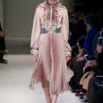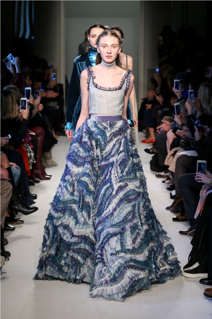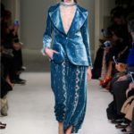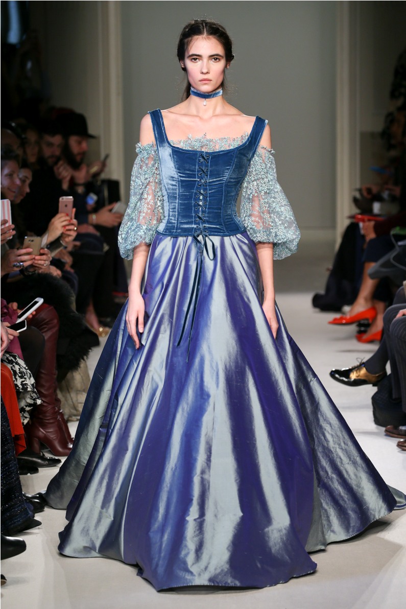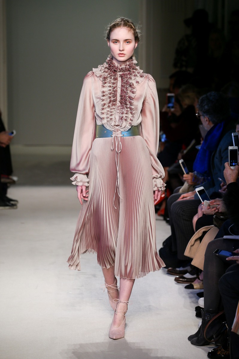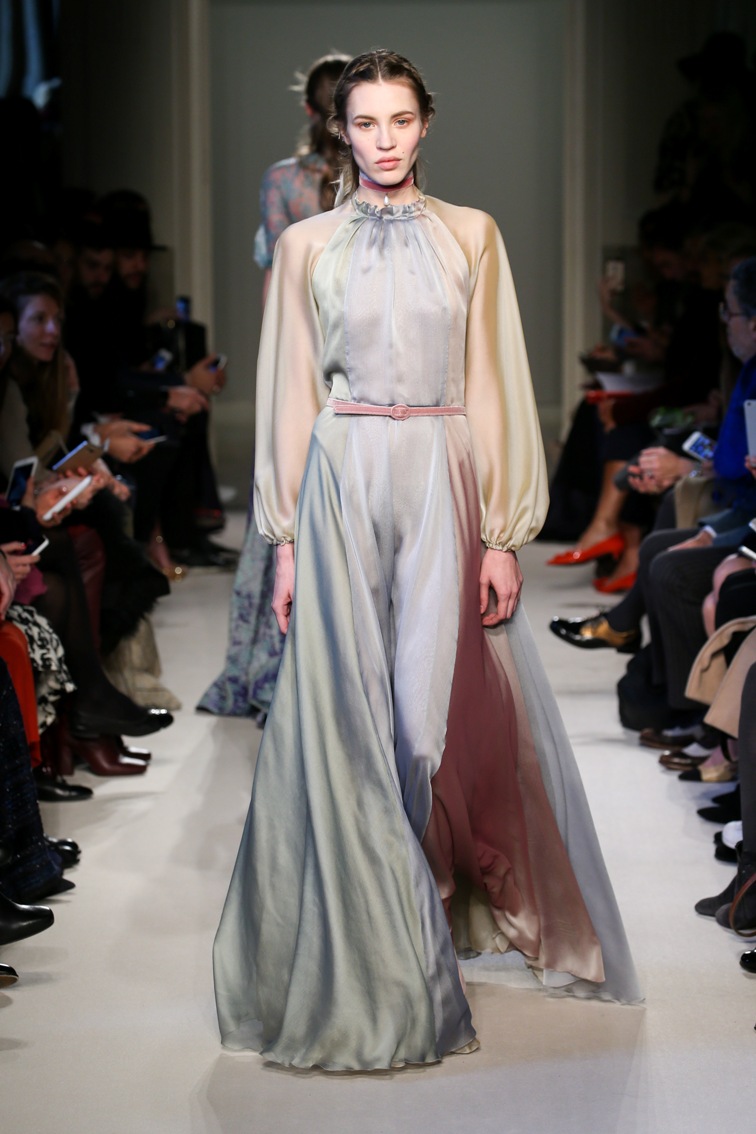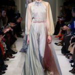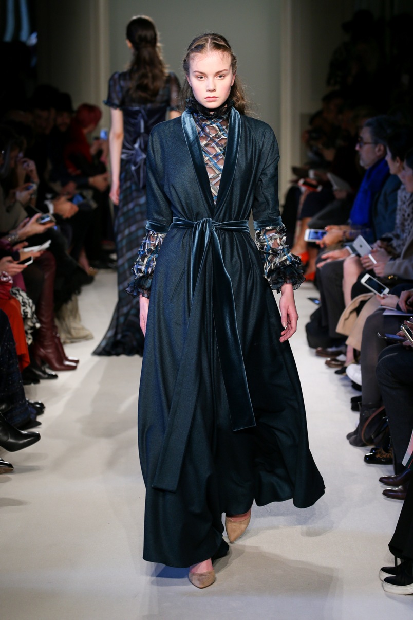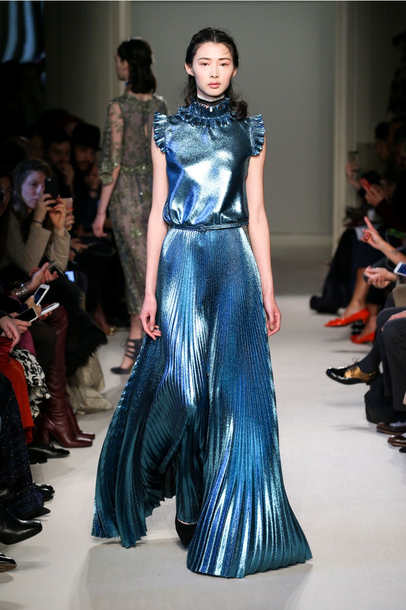 Difficile restare indifferenti di fronte a quei velluti -offerti a profusione trasversalmente a tutto-, a quei ricami -ricorrenti su abiti, maglie, corpetti, gonne-, a quei volumi -leggeri come piume e soffici come nuvole-.