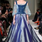 Ci inebriano le foglie tridimensionali e le losanghe di fiori applicati sul tulle e sui broccati degli abiti da sera, riportandoci alle atmosfere fiabesche di certe pellicole, viste e riviste, rimaste nel cuore fin dalla prima volta.