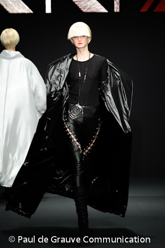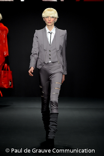 I pantaloni sono stretch, esaltati da due o tre cerniere oro appena sotto i fianchi o da irriverenti stringature e lacci in pelle.