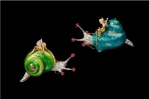 - Fulco di Verdura spille con smalti diamanti rubini e smeraldi 1968