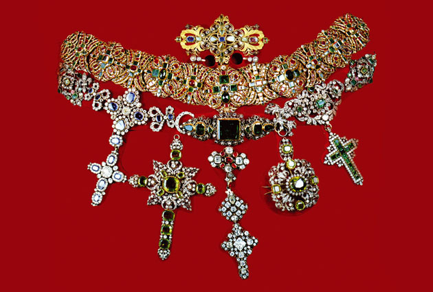 Al Tesoro di San Gennaro appartengono antichi documenti, dipinti di inestimabile valore, suppellettili preziose, ori e argenti, gioielli stupendi. Consideriamo solo qualche esempio per farcene un’idea, cominciando dagli omaggi della dinastia borbonica.