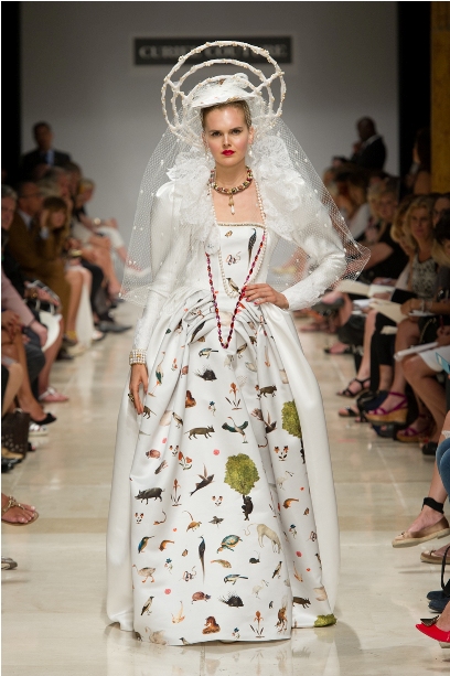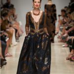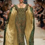 Mises evocative per Raffaella Curiel, “l’intellettuale della moda Italiana” che apre l’edizione di luglio di AltaRomAltamoda con una donna colta e raffinata, ancestrale e attuale, trapassata da arte e poesia, avvolta di mistero e maestà. Sofisticate citazioni storiche fanno rivivere atmosfere favoleggianti tra boschi incantati e illusioni shakespeariane .