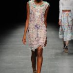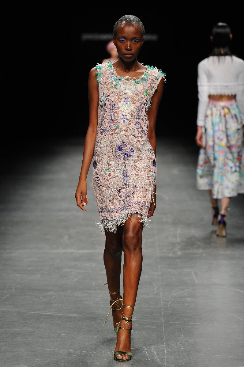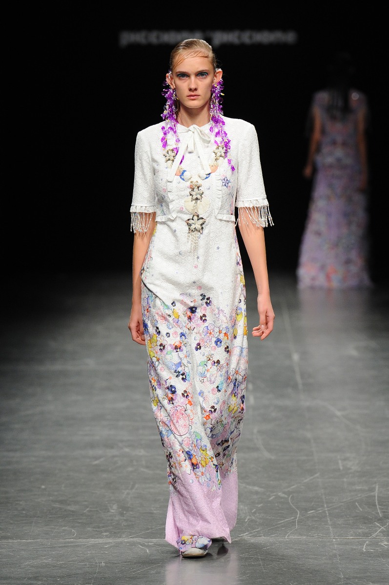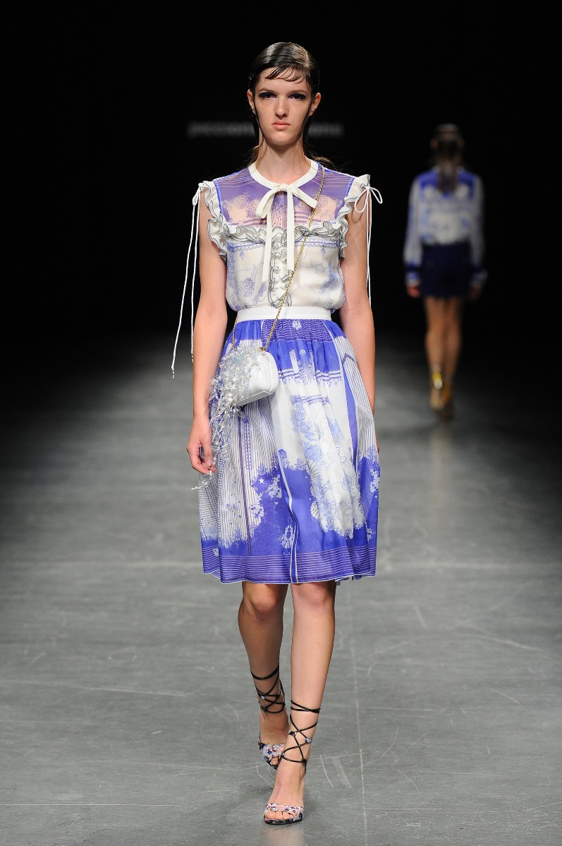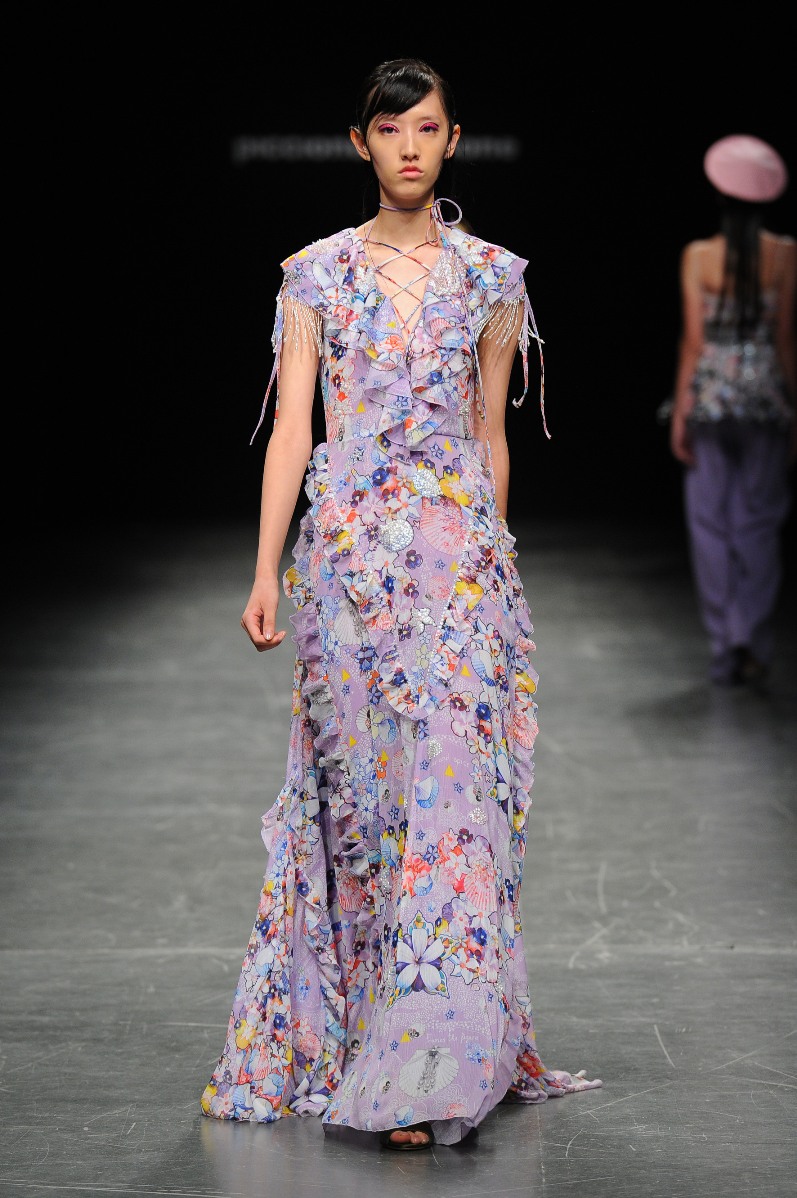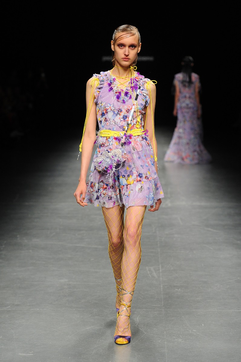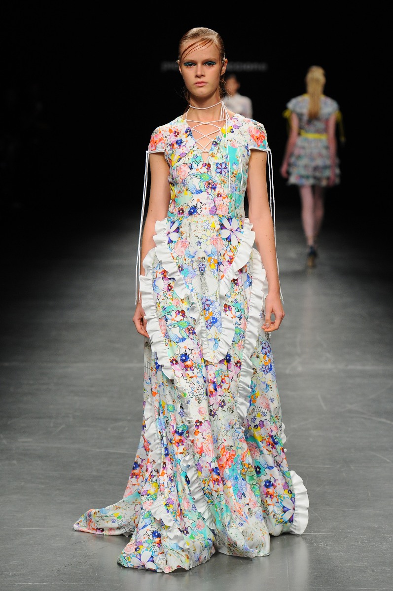 Il giovane designer ha tratto ispirazione, per quanto riguarda la paletta dei colori della collezione, dalle fiabesche immagini che il celebre fotografo inglese Tim Walker riesce a raccogliere nei suoi scatti. Ma è il libro “Il giardino delle vergini suicide” di Jeffrey Eugenides,che suggerisce allo stilista la prospettiva in cui porsi nel suo lavoro creativo: quella di chi sta sott’acqua e vede i colori e gli oggetti distorti e riemerge per cogliere meglio la ricchezza emotiva della realtà. Ben esprime tutto ciò un piccolo frammento del romanzo: “Sapevamo , finalmente, che le ragazze erano in realtà donne vestite da bambine, che erano in grado di capire l’amore e perfino la morte e che il nostro compito era solamente quello di creare un rumore sufficiente ed affascinarle.” Una celebrazione dell’incanto dell’adolescenza, età dei sogni e di poesia, età di mutamenti e fragilità, di freschezza e allegrezza, di leggerezza e complessità, che guarda al futuro con sguardo sognante e reca in se l’eco malinconico di una fanciullezza appena lasciata alle spalle.