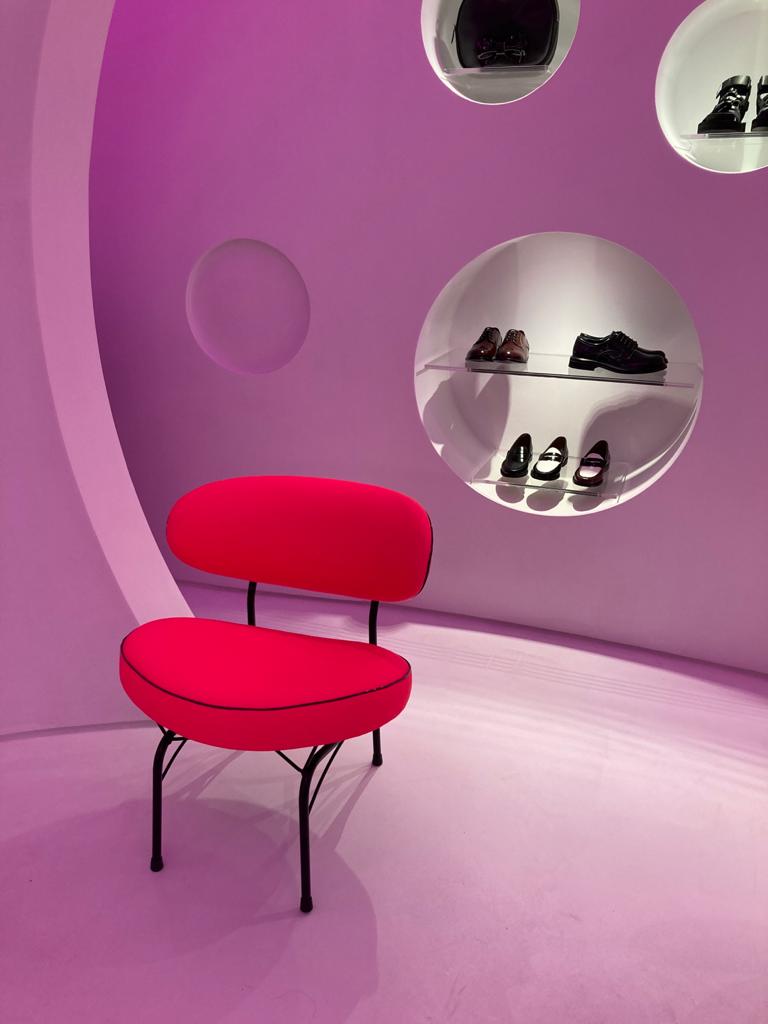Recentemente ristrutturato, questo spazio cult offre un’immagine completamente diversa dalla precedente. Un impatto total White inonda i fruitori subito all’ingresso inserendoli in una sorta di bagliore morbido e delicato. Uno scenario dove gli spigoli sono banditi e dove le candide linee ondulate simulano rincorrendosi in prospettiva sette lune -il sette è il numero portafortuna di Chichi Meroni!- che inglobano esaltandole le sue collezioni moda.