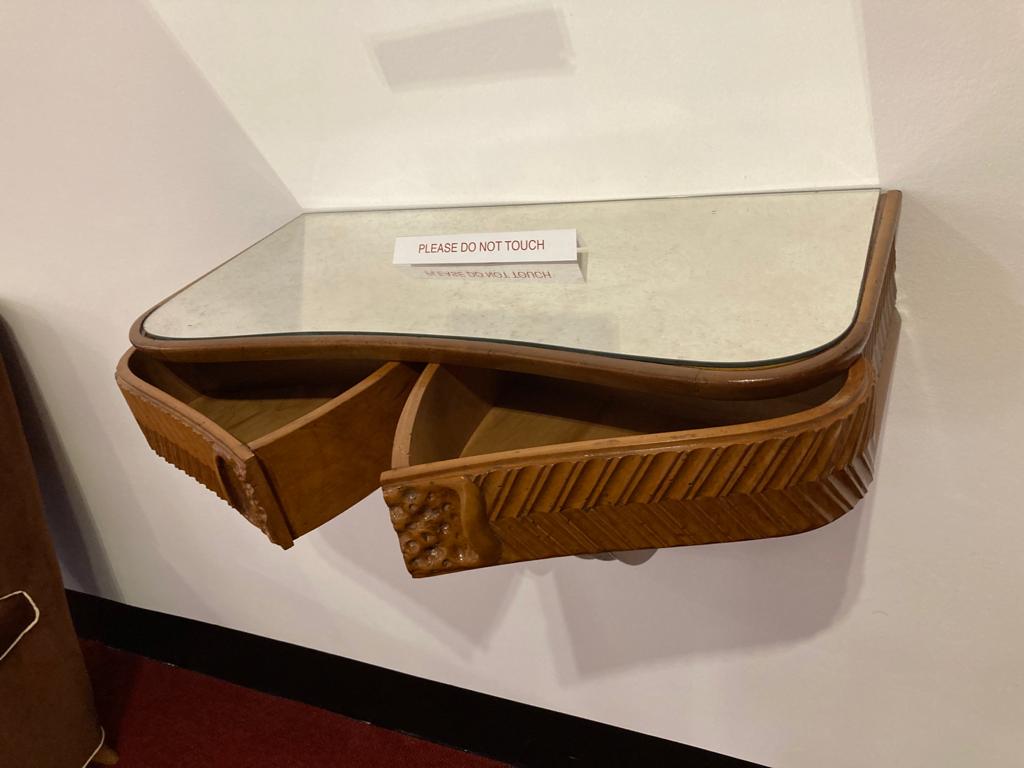 Fino al 7 Novembre 2021 la mostra intitolata “Carlo Mollino. Allusioni iperformali”. Trattasi del nucleo di arredi progettati dall’eclettico Mollino -architetto, fotografo, urbanista e progettista d’interni…ma anche sportivo impenitente- per casa Albonico a Torino realizzati tra il 1944 e il 1946. Pezzi mai visti -e pronti a “espatriare”-, salvati dall’intervento della Soprintendenza Archeologia di Milano (“Abbiamo bisogno di storie a lieto fine”, scrive nell’introduzione del catalogo edito da Elekta che accompagna la mostra Federica Galloni, Direttore generale Archeologia belle arti e paesaggio del Ministero della cultura).