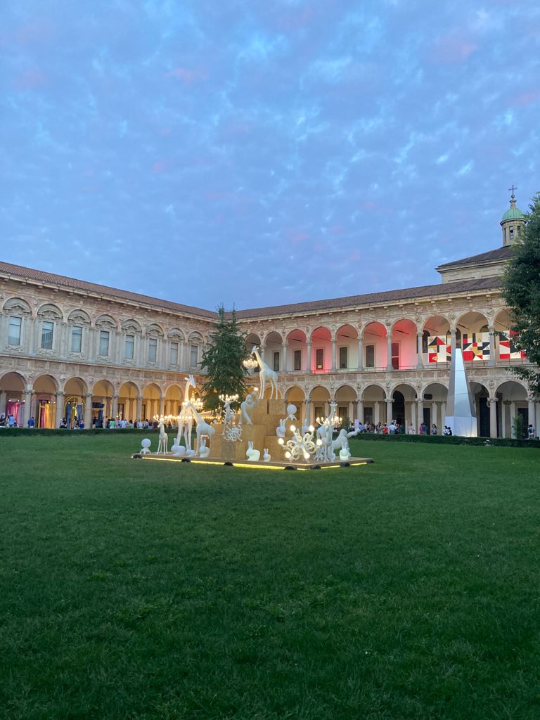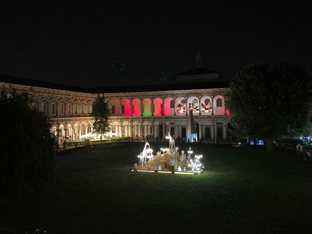 Imperdibile per noi l’interno dell’Università Statale, luogo dove le “Connessioni creative” -questo il titolo della mostra curata da Interni- illuminano il pregresso buio e allacciano in modo circolare emozioni trasversali.