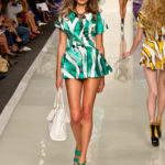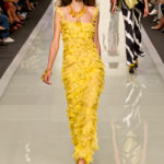 Si parte dal tema marino costumi, e copricostumi dai molti colori e stampe. Camicioni di chiffon abitini corti, pigiama palazzo dai pantaloni ampi; stampe che ricordano le piante acquatiche dei fondali marini nei colori giallo, fuxia e verde turchese.