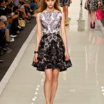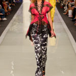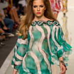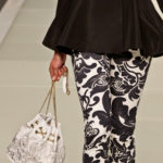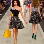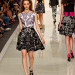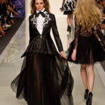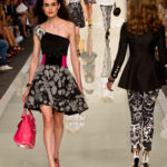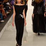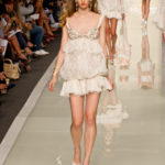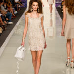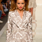 La notizia era di dieci giorni fa. Qualcuno aveva rubato l’intera collezione p/e 2011 di RoccoBarocco pronta per essere presentata alla Fashion Week di Milano. La domanda è spontanea. E’ stata ritrovata? Era già pronta una di riserva? Oppure lo stilista ha compiuto il miracolo di ripensare e far confezionare in soli 10 giorni una collezione che non fa rimpiangere quella smarrita? La collezione è bella, romantica, a tratti si indovina l’ispirazione orientale dichiarata dallo stilista e ne viene fuori una donna molto seducente; a tratti la reinterpretazione del newlook presenta una donna moderna, ma più rassicurante. Il look delle modelle, capelli cotonati e occhi molto truccati ci riportano agli anni ’70: rigorosamente bionde richiamano immagini di Brigit Bardot, ma l’acconciaura dei capelli ricorda anche Amy Winehouse la cui voce risuona nella sala.