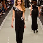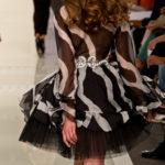 Si chiude con i colori della notte, in abiti lunghi e corti in chiffon dove predominano le balze e i pizzi doppiati nelle camicie.