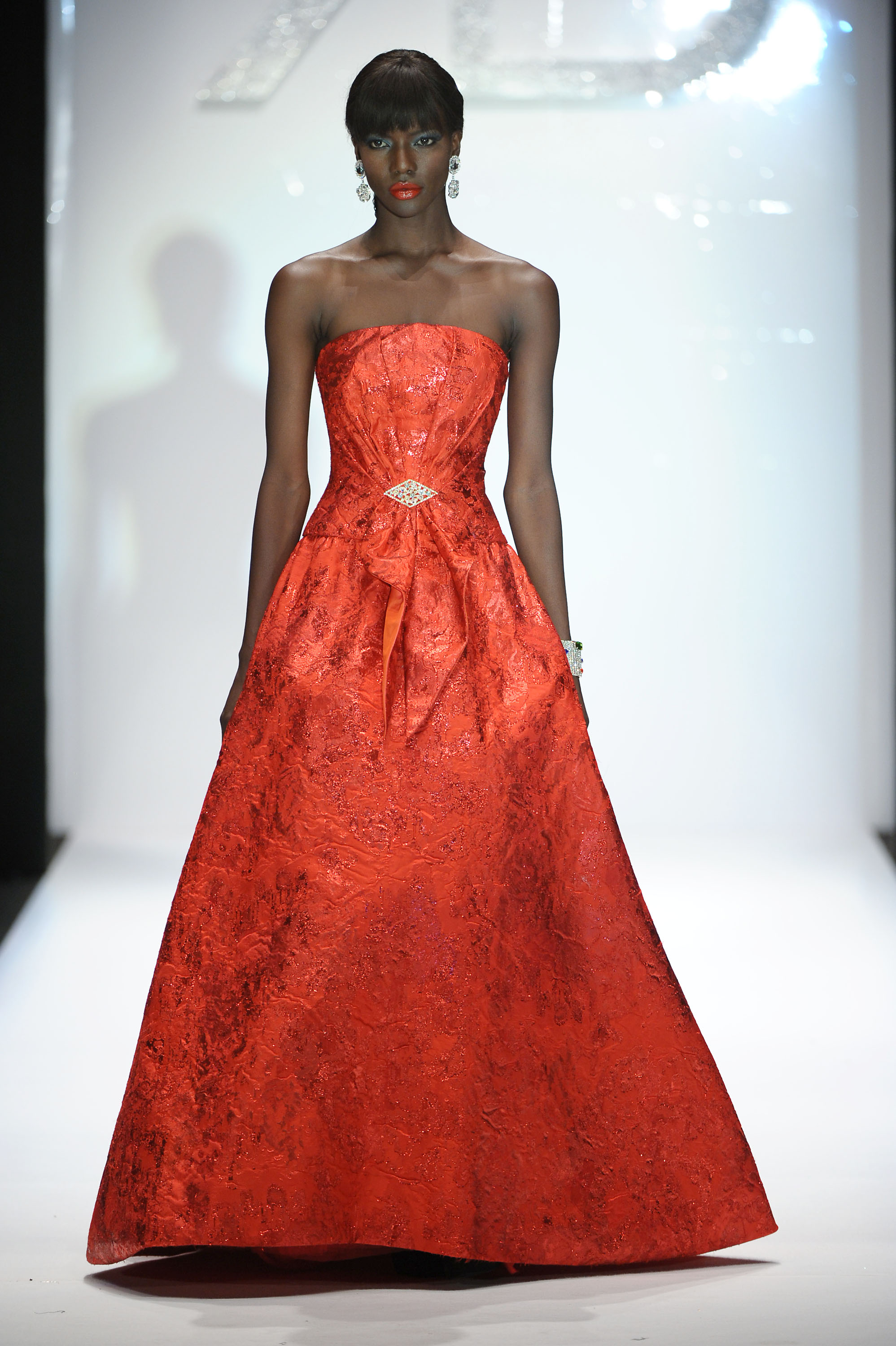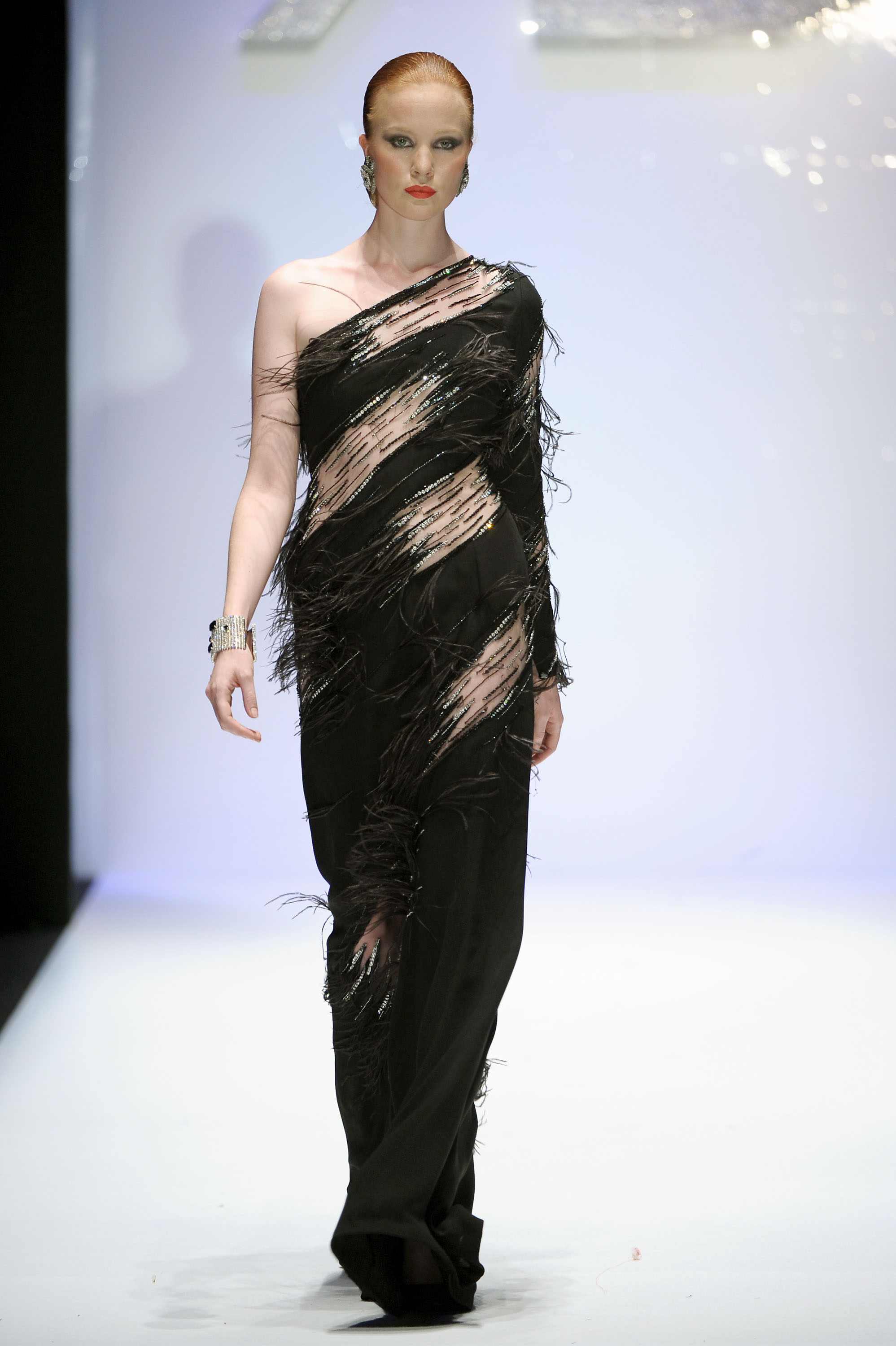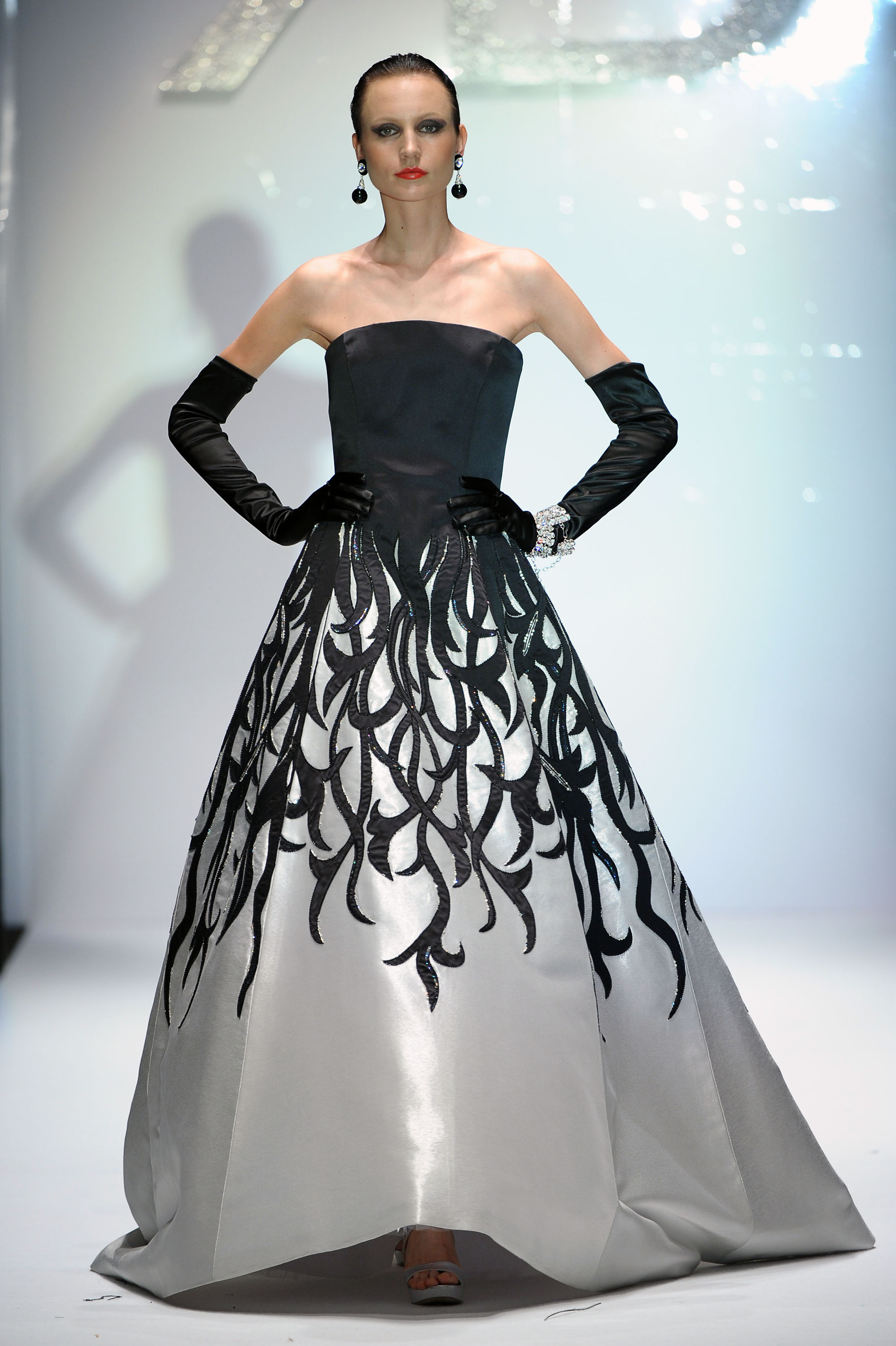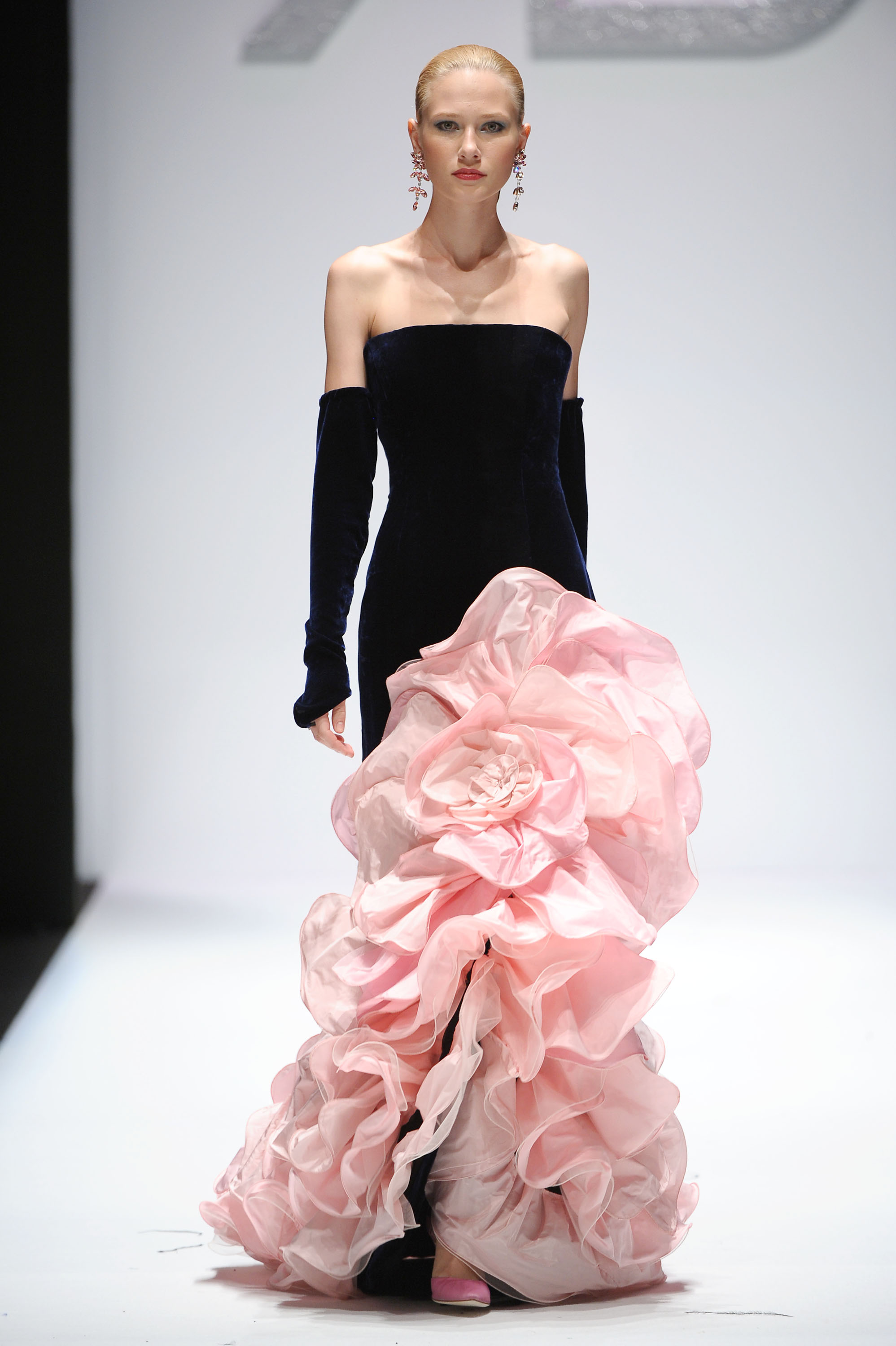 In passerella dominano dettagli, intagli e molte combinazioni fra tessuti diversi come velluto, raso e mikado perché, ha sottolineato Renato Balestra: -“Trovo che l’Alta Moda debba essere veramente Alta Moda, non solo nelle silhouette, ma anche nelle lavorazioni”. I mantelli in lana e le giacche allungate “6/8” sono lavorate con intarsi all’esterno; a sorpresa intarsi e ricami, si ritrovano anche nelle fodere interne, dando vita in alcuni casi, ad applicazioni coloratissime ad onda o fiorite. Il motivo della rosa, che orna i revers dei completi da giorno e caratterizza gli abiti da cocktail, conquista anche la sera. Una rosa gigante, rossa e in rilievo, spicca sulla gonna voluminosa dell’abito in mikado nero mentre, l’abito tubino in velluto noire, riproduce rose rosa, utilizzando elaborati vortici in tessuto. Ha sfilato tra gli altri, un modello nero, lungo con monospalla, reso intrigante da tagli e trasparenze. Le calze sono scure, i cappelli in feltro rivisitati nelle dimensioni, cedono il passo a “cappelli-acconciatura”.