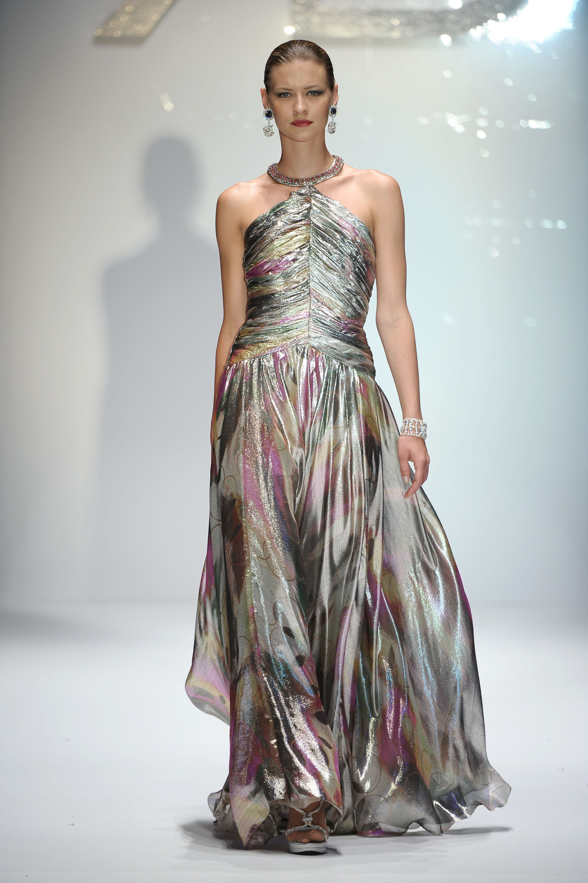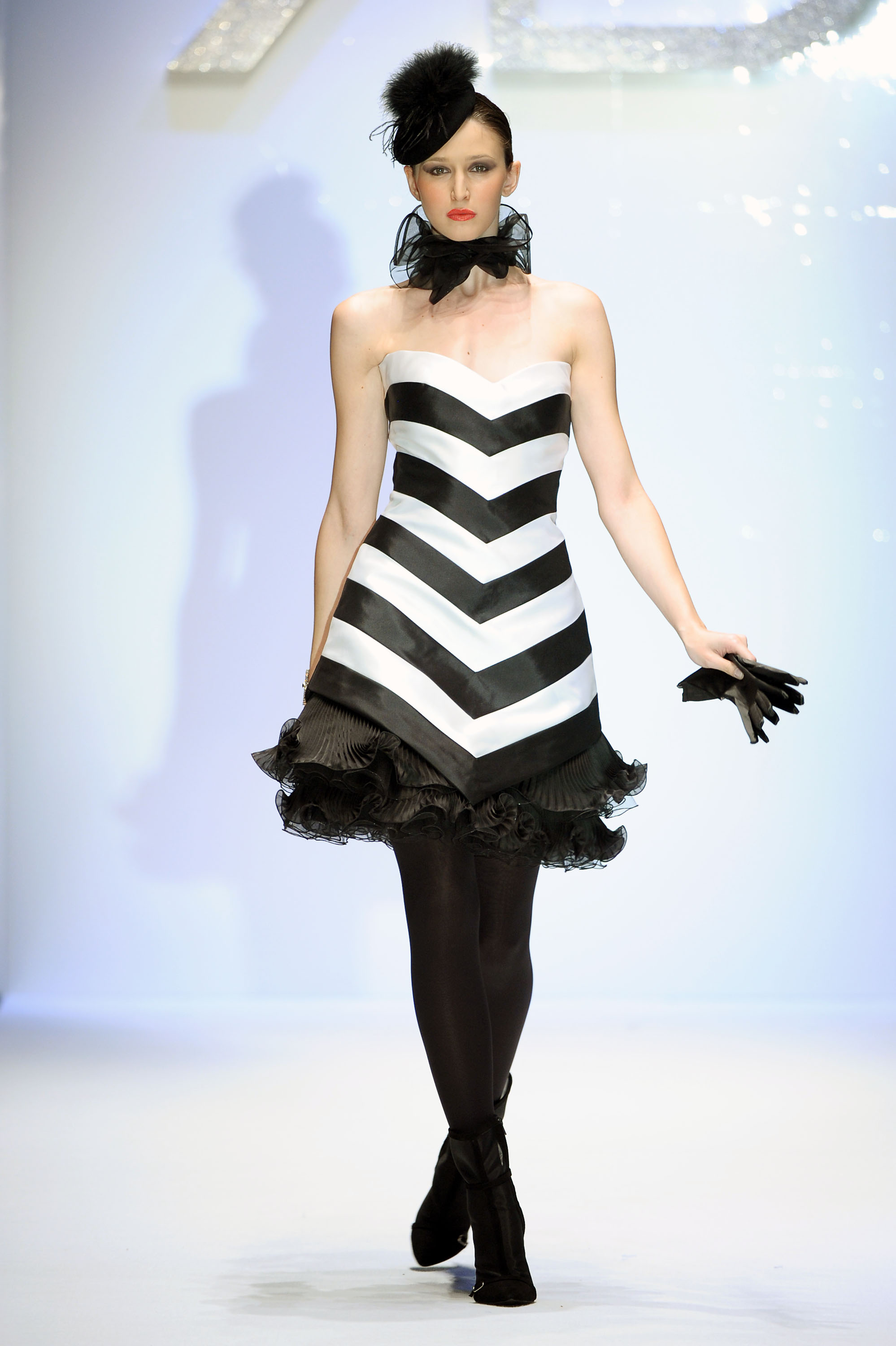 La rosa, regina del mondo vegetale, considerata a seconda delle nuances di colore, il fiore più voluttuoso o un simbolo universale di romanticismo e purezza, ha ispirato la collezione firmata da Renato Balestra per l’A/I 2011/2012. Lo stilista ha raccontato la sua visione articolata della donna, chiudendo la settimana dell’Alta Moda capitolina con una sfilata imponente, caratterizzata da più di settanta modelli presentati nel Teatro all’aperto di Villa Doria Pamphilj. La sfilata è iniziata con completi pantalone, giacche e tailleur di ispirazione androgina, in vari toni di grigio. Voluminose giacche in marabù dai colori vitaminici e al neon, nelle tonalità del verde mela, del blu elettrico e del giallo limone, hanno sfilato abbinate ad abiti o tute di seta. Come intermezzo è stata presentata la serie “arlecchino” composta da miniabiti in bianco ed in nero.