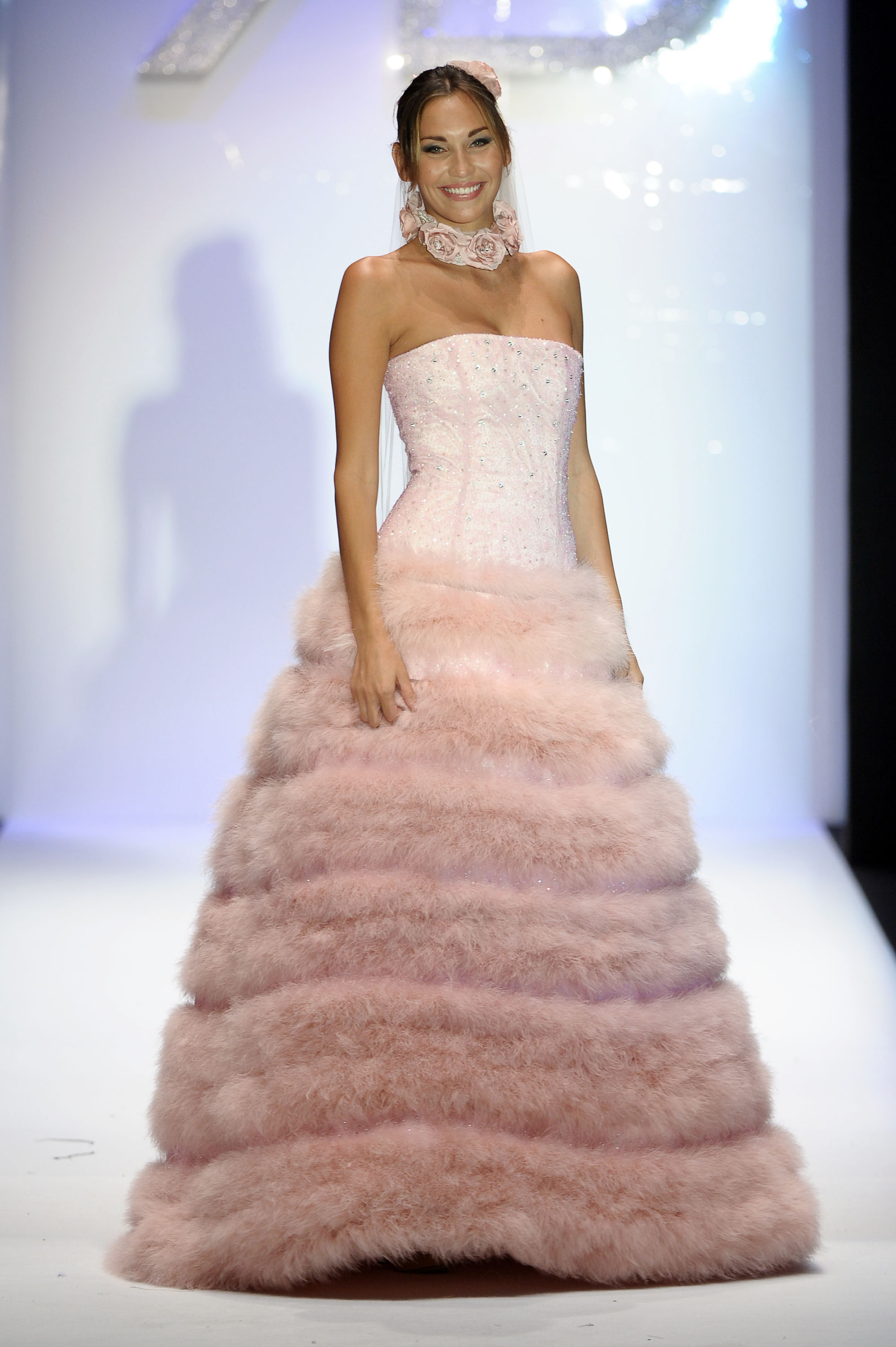 “I modelli da uomo questa volta hanno fatto un po’ da contorno“ ha spiegato Balestra, accompagnando le modelle. I completi maschili in grigio ed in nero, scelgono uno stile classico con alcuni interventi più estrosi, vedi i gilet ricamati con rose. Il frac eccezionalmente abbinato a una camicia nera, ha accompagnato l’uscita in passerella dell’abito da sposa, una creazione color rosa tenue in“stile piumino da cipria”, ricamata con inserti di marabù. La collezione comprende un modello analogo in nero, con corpino e intarsi ricoperti di paillettes.