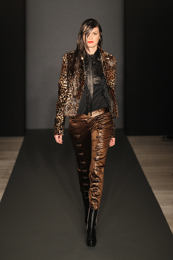 Paola Frani sceglie il suo showroom per presentare alla stampa, ai buyers e ai numerosissimi ospiti asiatici la sua collezione per il prossimo inverno, un Private Club tra amici. La musica scelta come colonna sonora è decisamente lounge, jazz in contrasto con l’idea di donna che emerge già dal primo outfit: sicura di sè, un pò rocker un pò biker, dal viso fanciullesco ma con un carico rossetto rosso, vestita di pelle. La grinta si evince dal passo sicuro in calzature militari che dominano i primi outfit delle modelle.