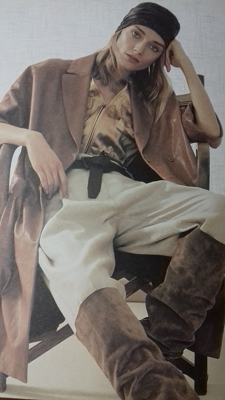 Linee disinvolte e pulite, tagli over, maniche a raglan e giacche doppio petto, pantaloni dalle linee fit o over, gonne lunghe e morbidi tricot, rappresentano la sintesi di una collezione giocata tutta su colori sobri e naturali, su toni sabbiati, su teneri bianchi, sugli écru, su tonalità cotte dal sole e nuance purissime, su sfumature color tabacco e caffè, su tinte speziate legate ai neutri e rigeneranti verdi e blu. Combinazioni di colore dalla tempra armonica e rilassante cariche di carismatico benessere, confortevoli ed avvolgenti.