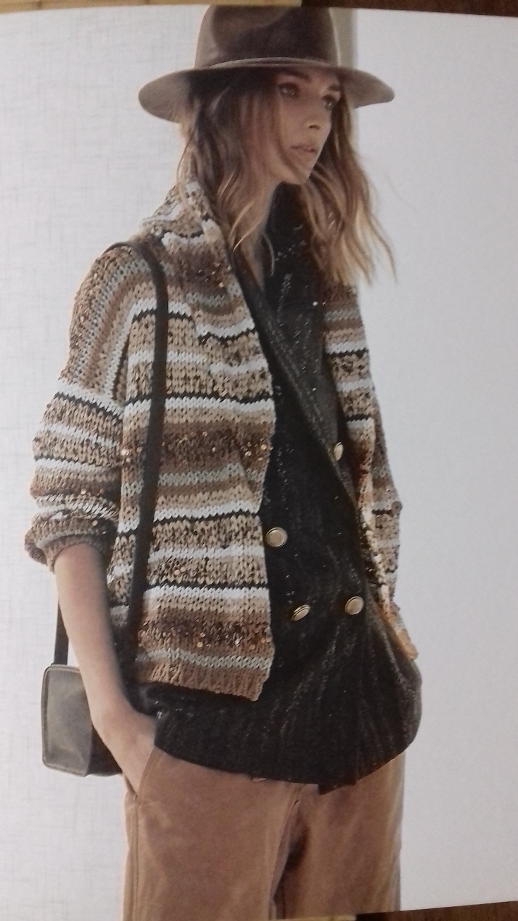 Tricot, morbidi e avviluppanti, realizzati in fibre rustiche e naturali come la canapa e il lino, o fatti da intarsi di tessuti diversi intrecciati tra loro: l’alpaca, il mohair e nastri in simil camoscio illuminati da piccole luminescenti paillettes e arricchiti dal fascino misterioso e sapiente delle fantasie etniche: richiami a luoghi e profumi lontani ad antichi mantra e a visioni primordiali, richiami di viaggi, di lunghi safari nella natura più aspra, pura ed autentica.