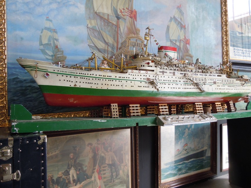Oppure i suppellettili da crociera stile Novecento: lampade, posate, piatti, candelabri, tovaglie e arredi appartenuti al transatlantico “Giulio Cesare”.