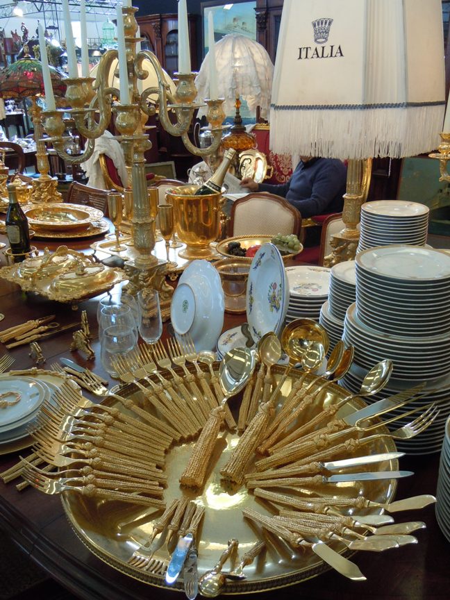 Infatti vedo mobili impegnativi, ma anche pizzi, vintage, borsette, bigiotteria, tappeti, porcellane, dipinti, di tutto un po’ a tutti i prezzi.