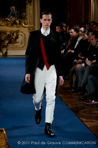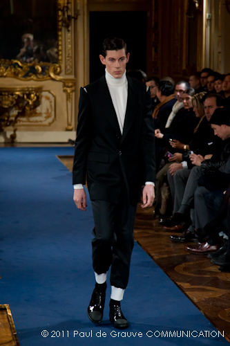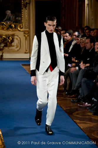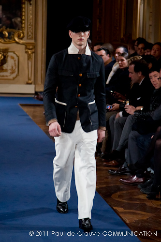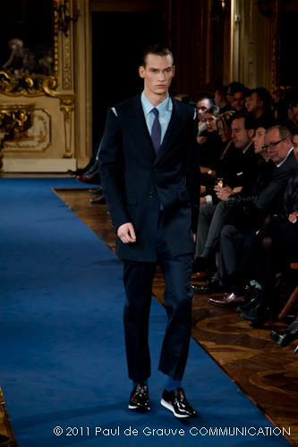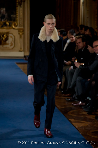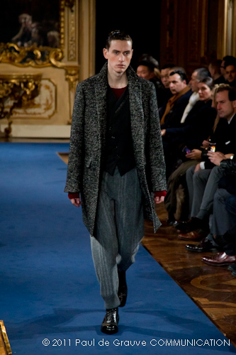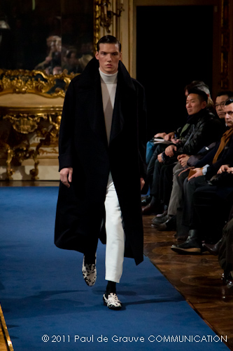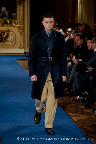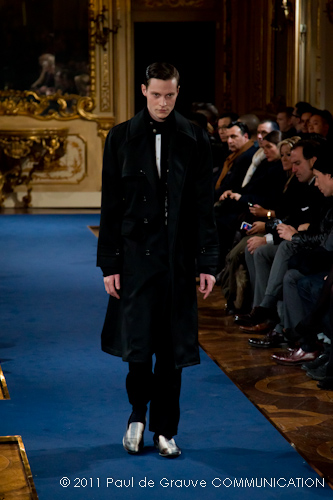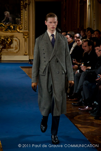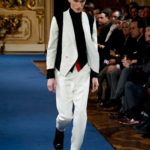 La collezione vista a Milano, pur se ha esplorato la memoria della griffe, è lontana dal presentare novità di richiamo che possano attirare l’attenzione: nel suo insieme è disciplinata, addirittura rigorosa. Certamente l’abbigliamento maschile non permette grandi espressioni di genialità, ma l’ispirazione militare di giacche e cappotti, attinta alle divise inglesi del settecento, ed a volte eccessivamente riconoscibile, impedisce evidentemente alla stilista di dare spazio alla creatività, quella, un po’ clamorosa che ci saremmo aspettati dalla firma McQueen. D’altra parte, non sappiamo ancora se qualche gene di Alexander McQueen è nel DNA della stilista.