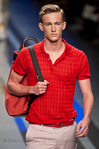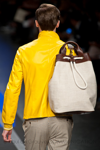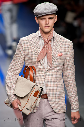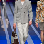 Continua il percorso verso uno stile sempre più easy, dove le giacche lasciano spazio a spolverini e alla Kei, la giacca icona della maison Canali, che per la prossima primavera estate si propone in un mood giocoso, fatto di colori accesi e forti accostamenti cromatici, abbinata a polo anch’esse dai colori decisi, per un’eleganza un po’ sopra le righe. Il Panama viene sostituito da coppole sbarazzine, si aggiungono zaini morbidi e colorati, ma non si perde l’atmosfera di raffinatezza.