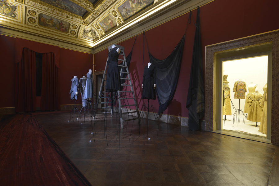Un altro “segreto” della formula per numeri museali da primato è il tipo di allestimento, che nel caso di Pitti il medesimo Saillard ha descritto così: “Su manichini di legno e cera, ma anche abbandonati su poltrone e sedie, sospesi in morbide sculture, distesi come belle addormentate, gli abiti sono i naufraghi di un museo misterioso, fragile e caduco. Nel giro di qualche mese esso scomparirà, vittima e testimone del tempo che passa”.