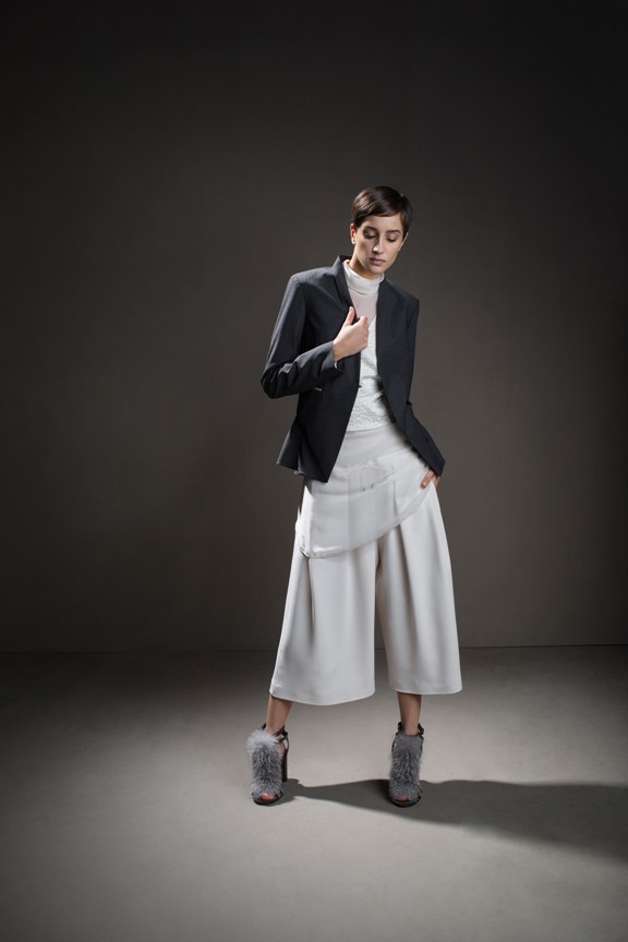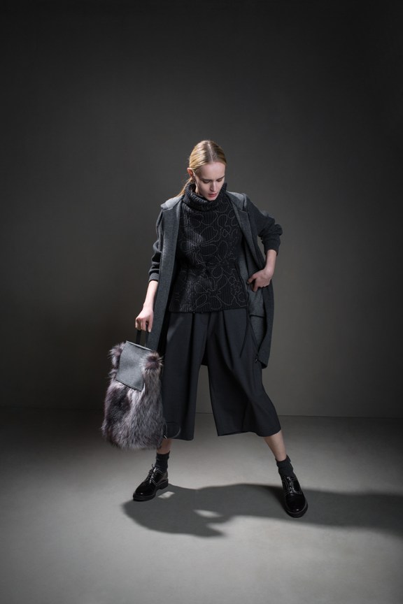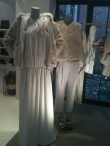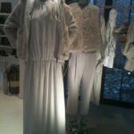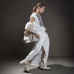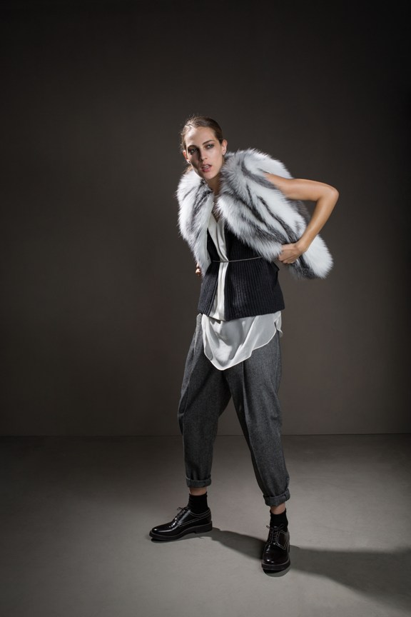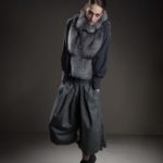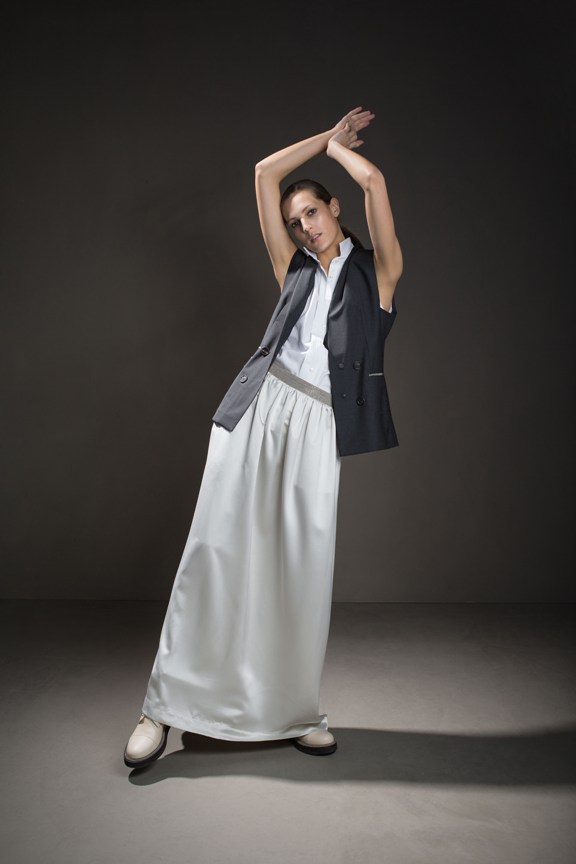 E “incontriamo”, appese alle grucce o indossate da giovani e accoglienti indossatrici, linee affusolate, lunghezze verticaleggianti, materiali soffici e impalpabili mescolati ad accessori metallici e dal sapore artigianale. Cappotti tendenzialmente smanicati -da sovrapporre ad altri pezzi come nel gioco delle scatole magiche-, maglie dalla vestibilità trasversale -da portare in qualsiasi ora del giorno- che si sostituiscono a giacche e giacchette introducendo una nuova modalità di interpretare lo “spezzato”.