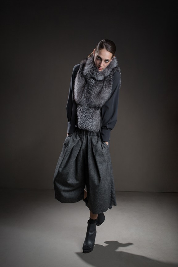 Procedendo, ci “imbattiamo” in parka avvolgenti -dove le bordure di pelliccia apportano maestosità e grazia- resi alquanto femminili dalle ampiezze dei volumi e dalle rifiniture ricercate.
