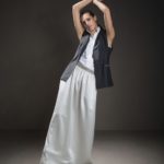 Ci “scontriamo” poi con abiti impalpabili dagli scolli profondi sulla schiena, con gonne fluide o a matita, con pantaloni -a volte “cortini”- dalla linea dritta dove la piega è spesso “cucita” per dare maggior risalto all’aspetto sartoriale.