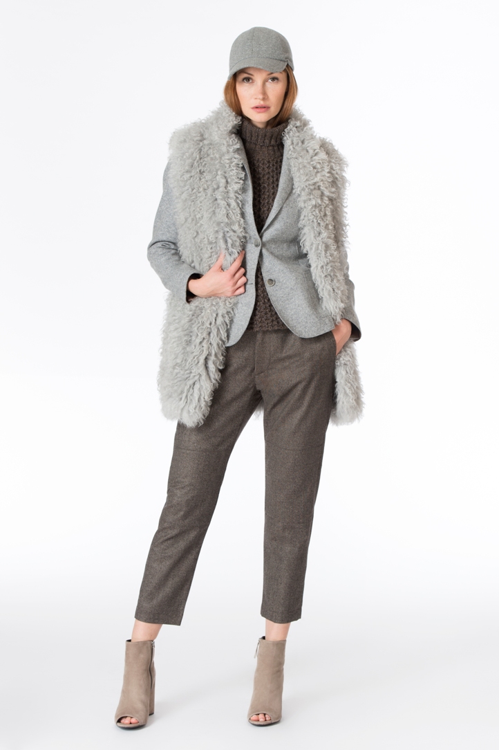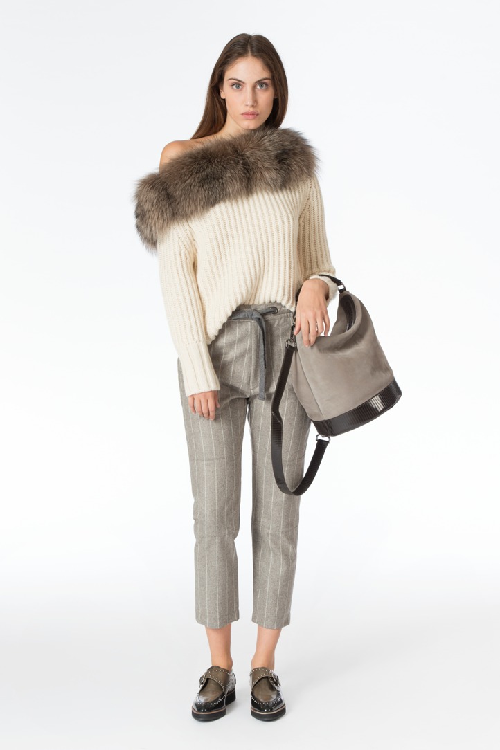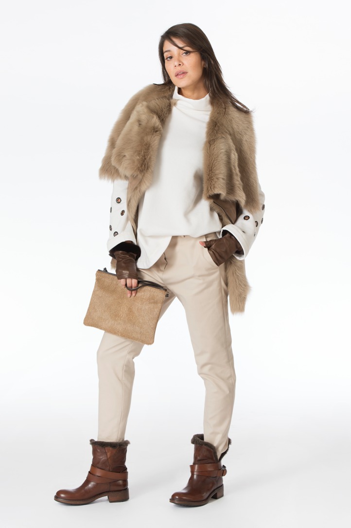 Splendidi i morbidissimi cappotti lunghi dal taglio pulito e sartoriale, irresistibili i baby lamb accompagnati da sciccosi colli in mongolia, mentre i ricami in canottiglie di vetro e resine per la sezione più sportiva della felperia rendono il look molto più grintoso, se pur ricercato, con linee confortevoli ed avvolgenti al punto giusto.