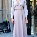Gli abbinamenti di stampe e tessuti multicolore funzionano meglio quando si tratta di vestiti corti, adatti alla sua frizzante gioventù, ma allo stesso tempo in grado di conferire un’aria vagamente matura; in questo caso lo styling minimale si presenta estremamente funzionale a porre l’abito al centro dell’attenzione. Ad esempio lo scorso anno ha sfoggiato un abito aderente, senza maniche, con scollo asimmetrico e lungo fin poco sopra il ginocchio, di Antonio Berardi, appartenente alla pre-collezione autunno/inverno 2014-15, in color verde pino con quadri scozzesi gialli, attraversato da una zip dorata serpeggiante, che sulla gamba destra apre un piccolo spacco, mentre nella parte superiore del vestito rivela un tessuto sottostante differente, indaco con applicazioni dorate di ispirazione stellare, che creavano un piacevole contrasto con gli alti sandali infradito argento “Athena” di Christian Louboutin.