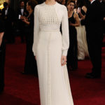 Anche gli abiti da sera vengono contaminati dalla sua predilezione per le stampe d’impatto ed i ricami multicolore, sfoggiando creazioni d’avanguardia come quella grigio metallizzato di Christopher Kane, appartenente alla collezione autunno/inverno 2012-13, indossata al Met Gala nel 2012, senza maniche, con colletto alto e che seguiva le forme del corpo, con un groviglio di fiori variopinti ricamati con fil di ferro e pannelli di pelle nera sulle spalle e sulla vita, dove sono presenti due strisce di differente ampiezza a formare delle sorta di cinture, oppure abiti più romantici e femminili come quello in color carta da zucchero realizzato da L’Wren Scott per la primavera/estate 2012, portato ai SAG dello stesso anno, senza maniche e con scollo a V, con taglio asimmetrico all’altezza del ginocchio, interamente in pailettes, con ricami floreali bianchi e rosso scarlatto.