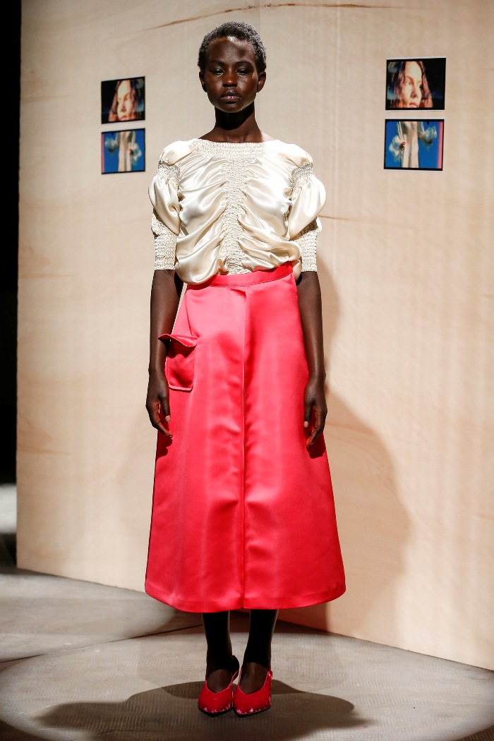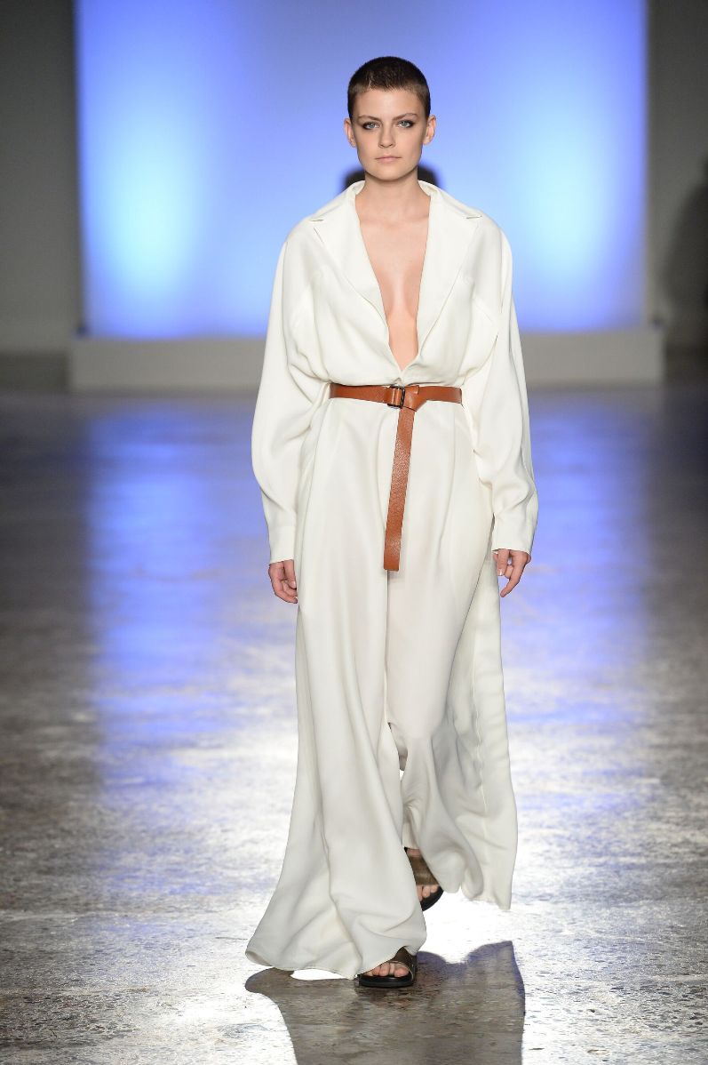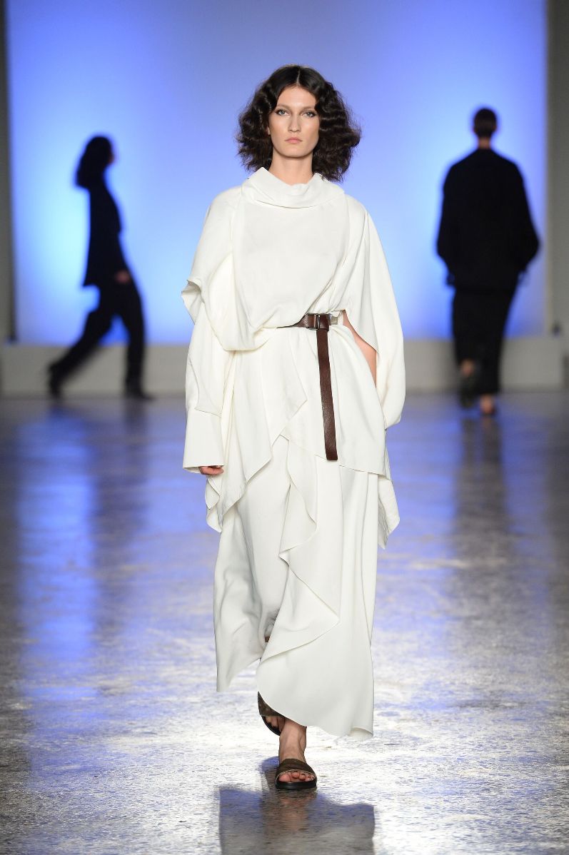La stilista racconta le donne in maniera scarna, concreta, autentica, essenziale. Le racconta nella loro purezza, nella loro essenza, nella loro identità. Racconta la moda dal punto di vista della forza ma anche della fragilità, che il privilegio di essere gentil sesso comporta.