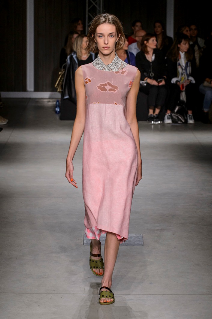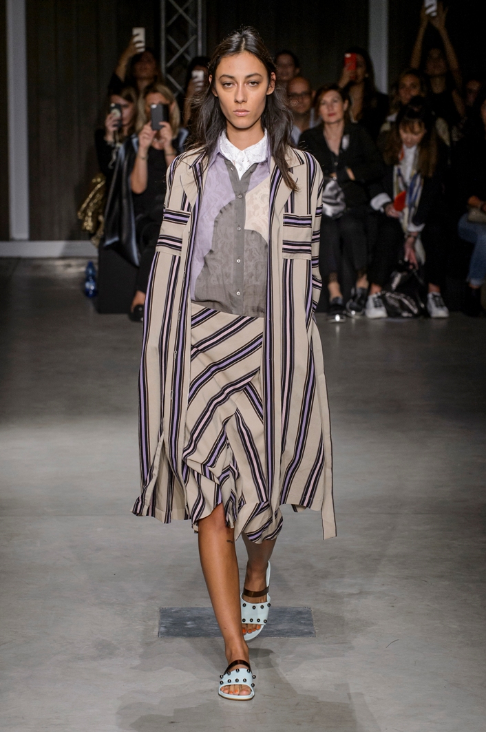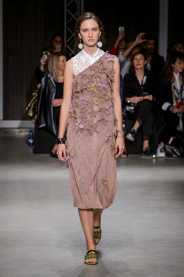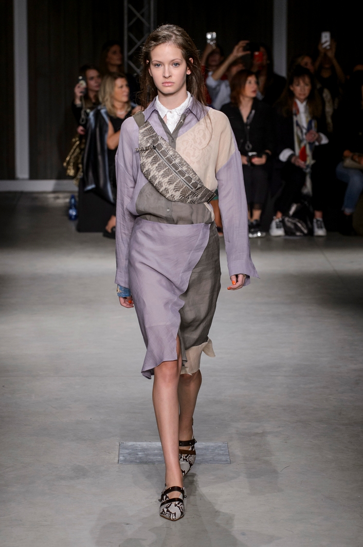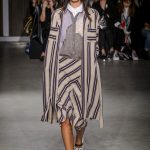 Una passerella nel suo complesso delicata, femminile, originale, sobria e dai toni stemperati, dove linee geometriche disegnano silhouette dal piglio contemporaneo e dal mood complesso e sofisticato. Un’ eleganza evidente ma silenziosa, fatta di toni pacati e tenui, fatta di abiti dalle linnee armoniose che accompagnano il corpo come leggere sinfonie di un autunno protratto per più di una stagione: ed ecco i dress, le tuniche, gli spolverini, le giacche e le gonne dalle cromie sabbiate e composte.