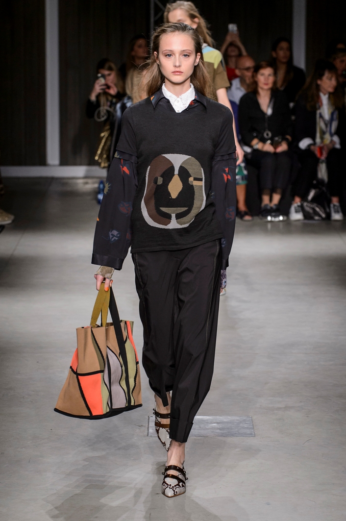 I fiori intarsiati sono sparsi anche sulle shopping di maglia in punto Milano di cotone di crepe; per la collezione uomo fiori adagiati sulle cravatte conferiscono all’accessorio un piglio spiritoso e ludico nonché un effetto totalizzante atto ad armonizzare tutta la proposta.