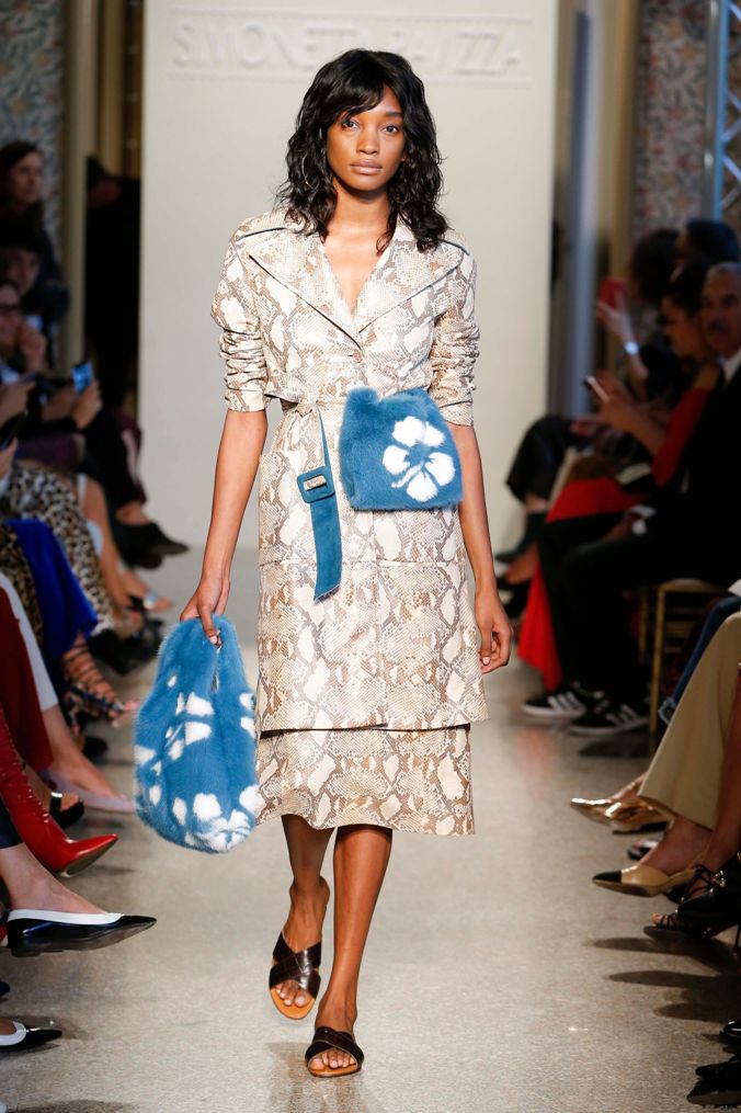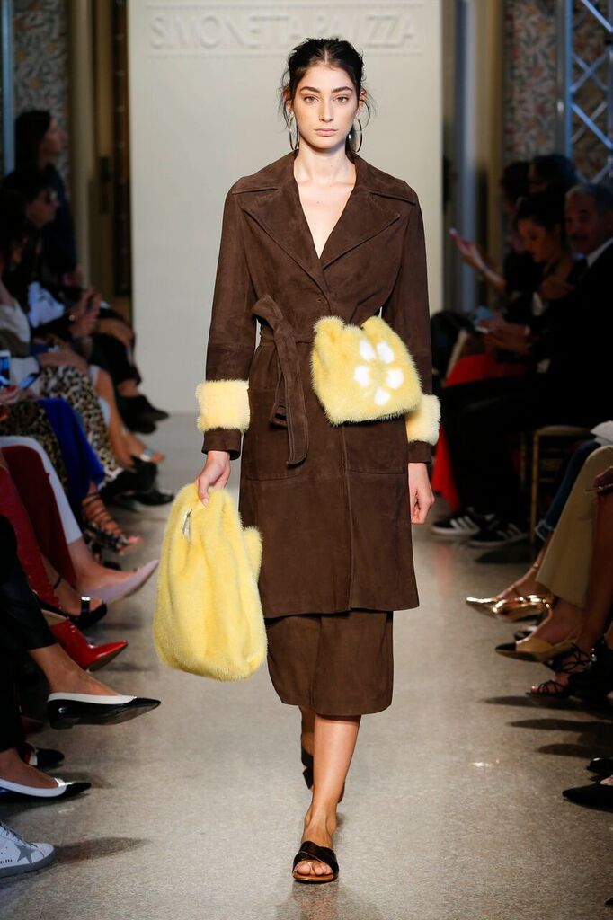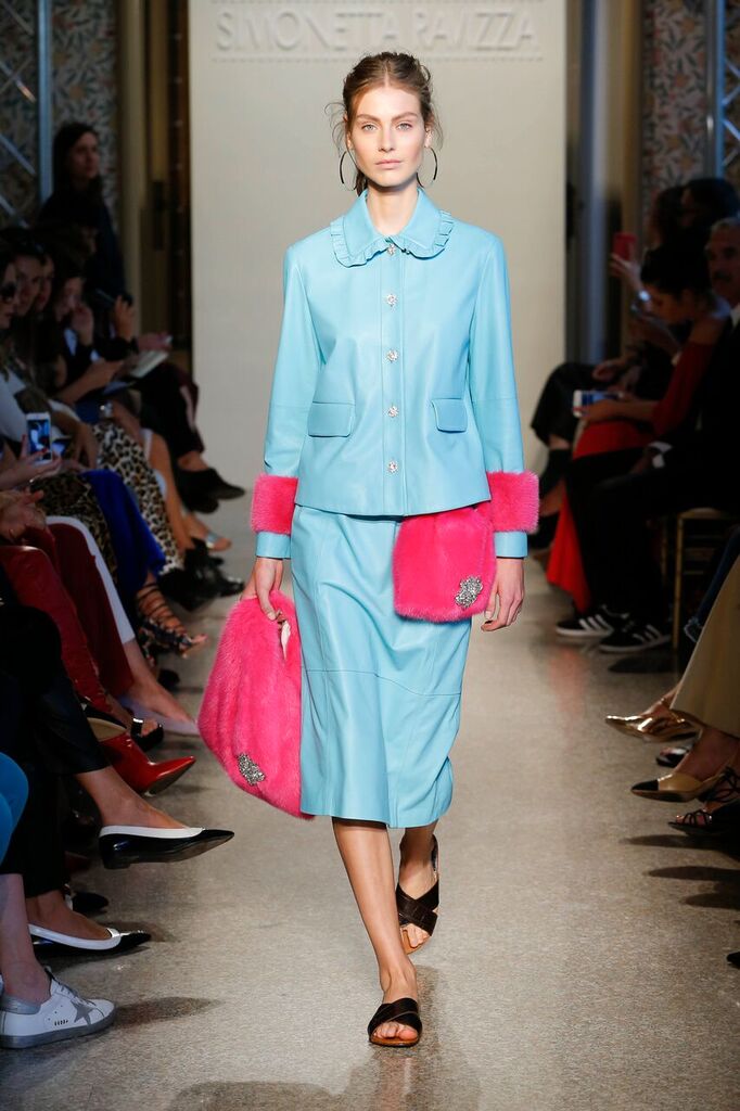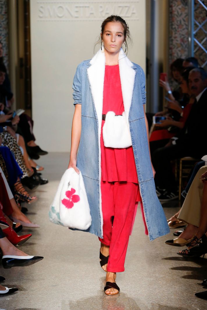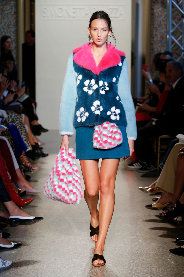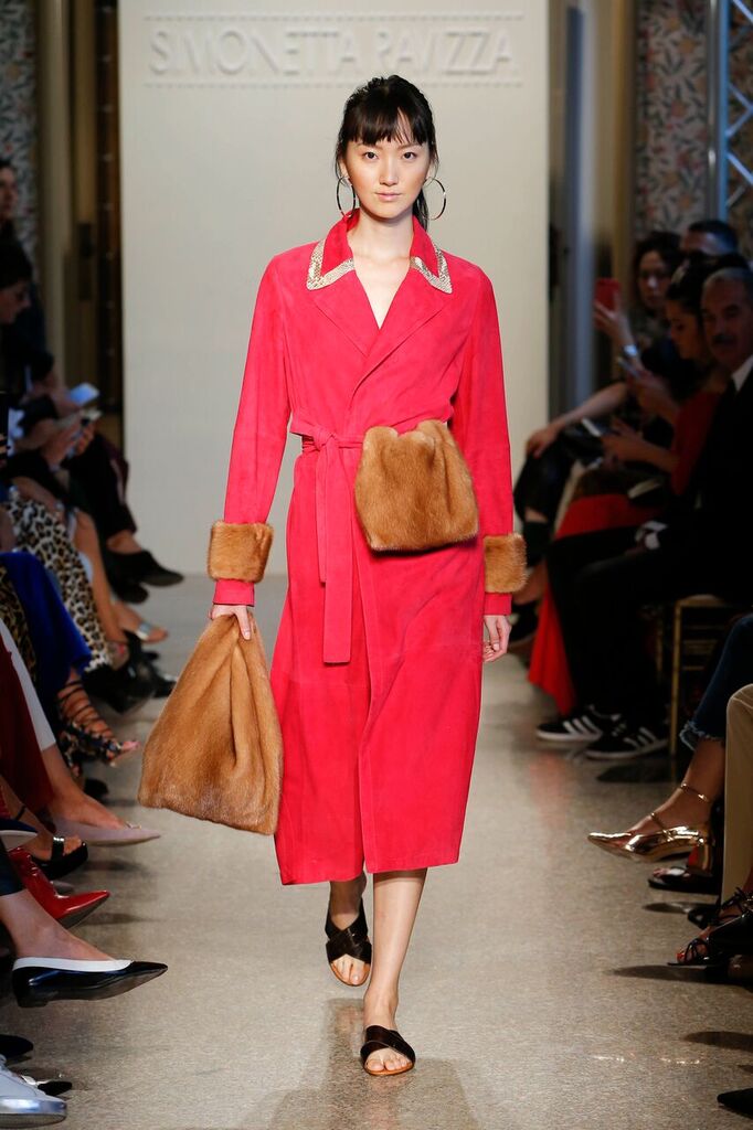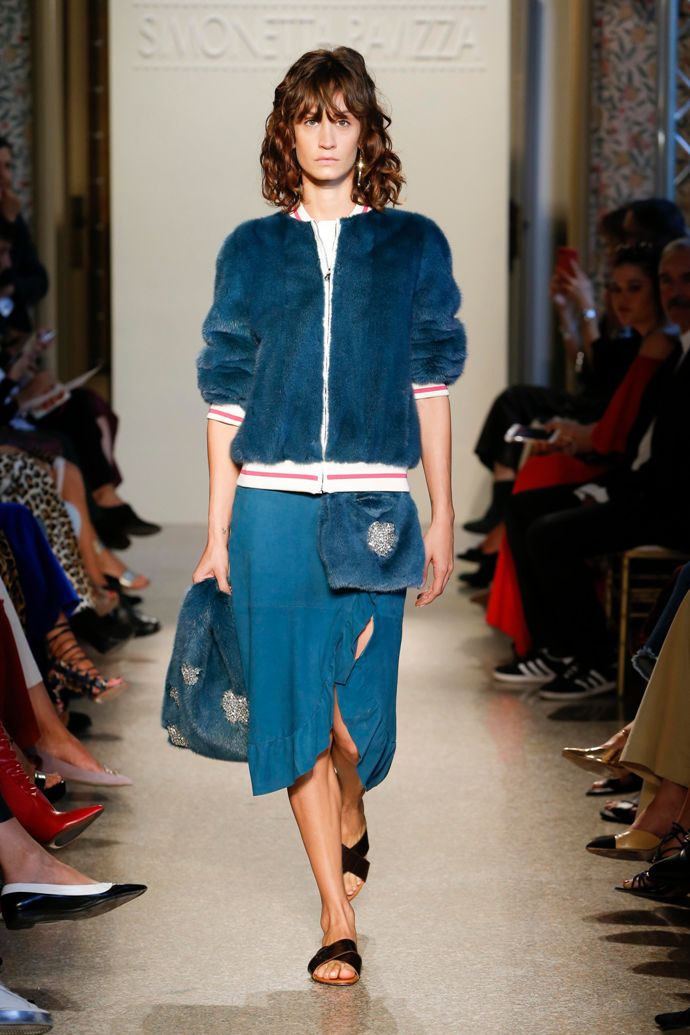 Un guardaroba versatile -nelle sue possibilità combinatorie, facile nel look e sontuosamente moderno nei materiali, fatto di linnee morbide e femminili che definiscono silhouette sinuose ed eclettiche-, quello proposto della designer dal “lusso sussurrato” Simonetta Ravizza. Generoso l’uso della pelle di visone presentata in varie brillanti cromie, dal turchese al rosa, dal verde acqua al verde petrolio, dal rosso al fucsia, impiegato nei divertenti gilet e nei bomber, oltre che per la iconica “FURRISSIMA”: borsa ispirata al sacchetto della spesa del supermercato, un’ idea simpatica e giocosa alla quale si aggiunge anche la “Mini Furrissima”, una piccola quanto originale miniatura da passeggio, da portare cinta in vita a mo’ di mini marsupio.