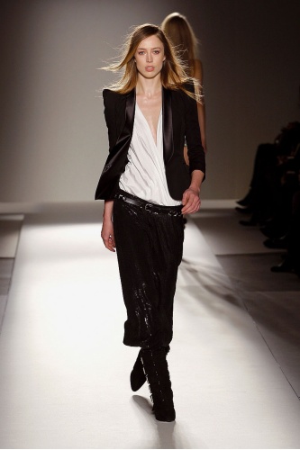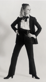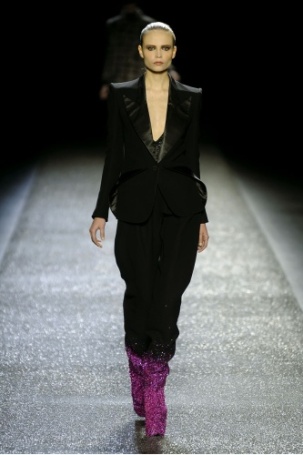 Molti altri stilisti sono stati sedotti dal tuxedo da donna e l’hanno personalizzato, modificato e plasmato a loro gusto: Dercanin per Balmain ha scelto una giacca con revers di raso dalle spalle appuntite e rigide e pantaloni a vita molto bassa con risvolto, Nina Ricci fa indossare alle sue modelle stivali brillantinati e dai colori psichedelici, Cristina Oriz ha optato per uno smoking senza maniche, estremamente elegante, non convenzionale e sinuoso.