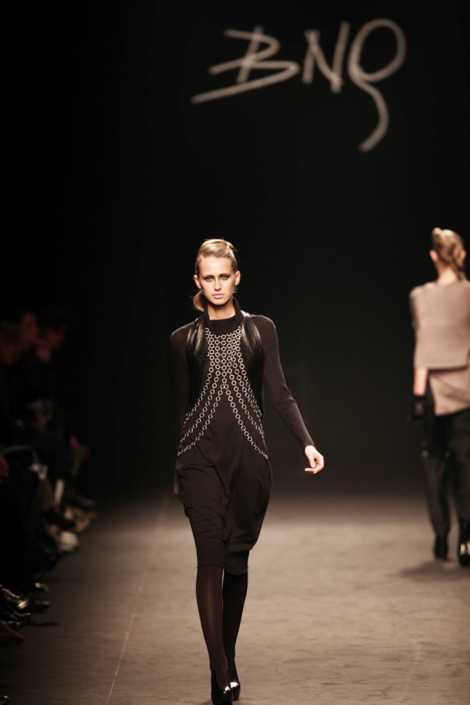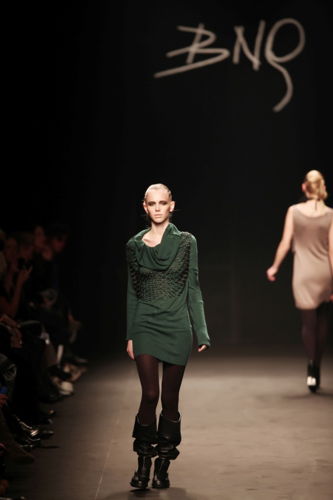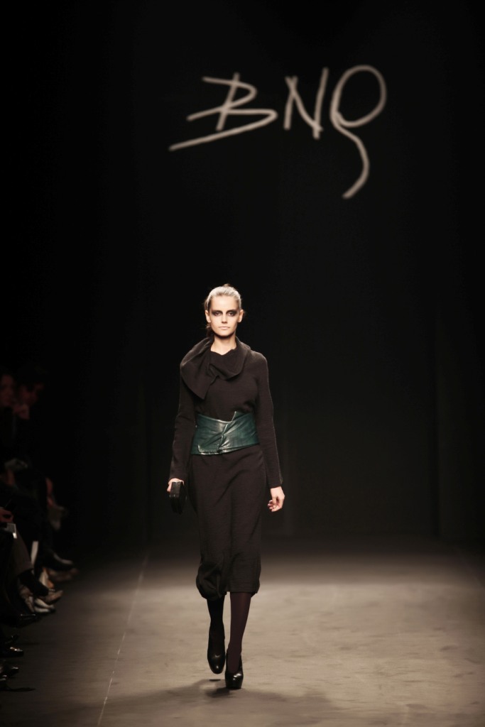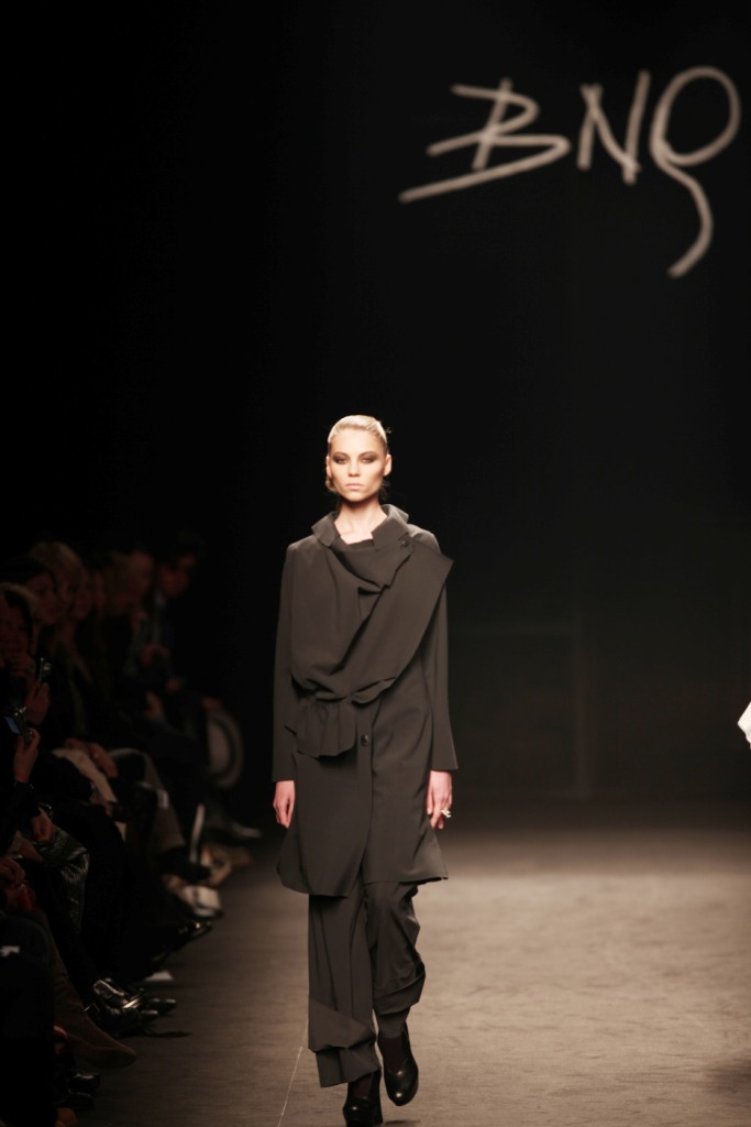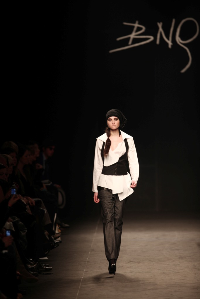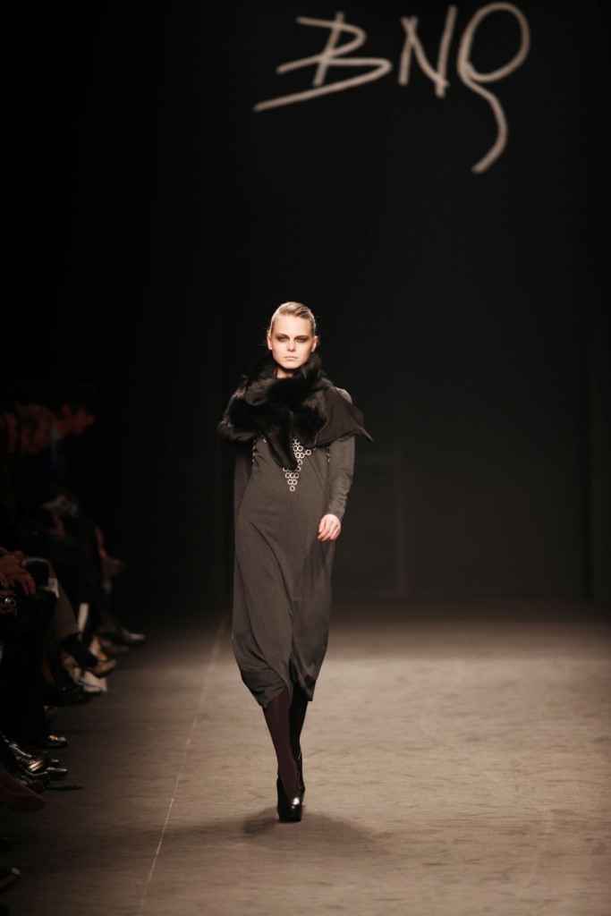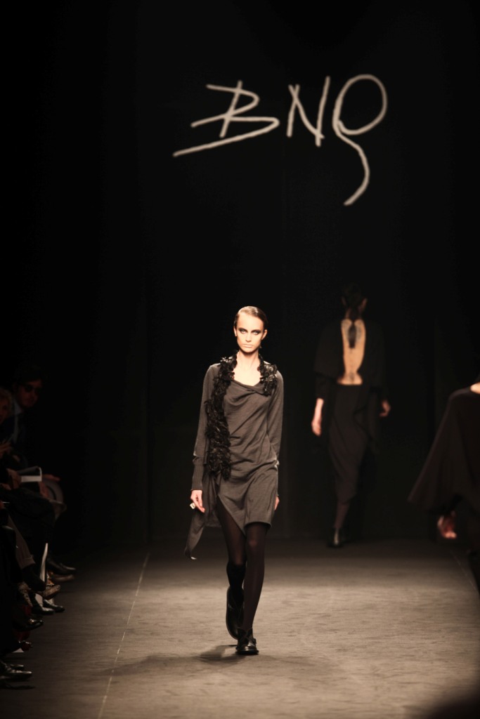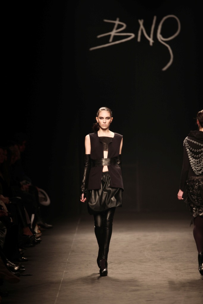 Sul sottofondo di una musica sempre ritmata, le modelle avanzano a passo veloce e deciso: la figura femminile da cui Nilgün trae ispirazione è la guerriera Clorinda, da cui la donna di oggi eredita il coraggio, la caparbietà e la sicurezza. Altra traccia di questo mito la ritroviamo nell’utilizzo di catene leggere che prendono la forma di collane o arricchiscono semplici abiti neri, arrivando a costituire dei veri e propri gilet o copri spalla.