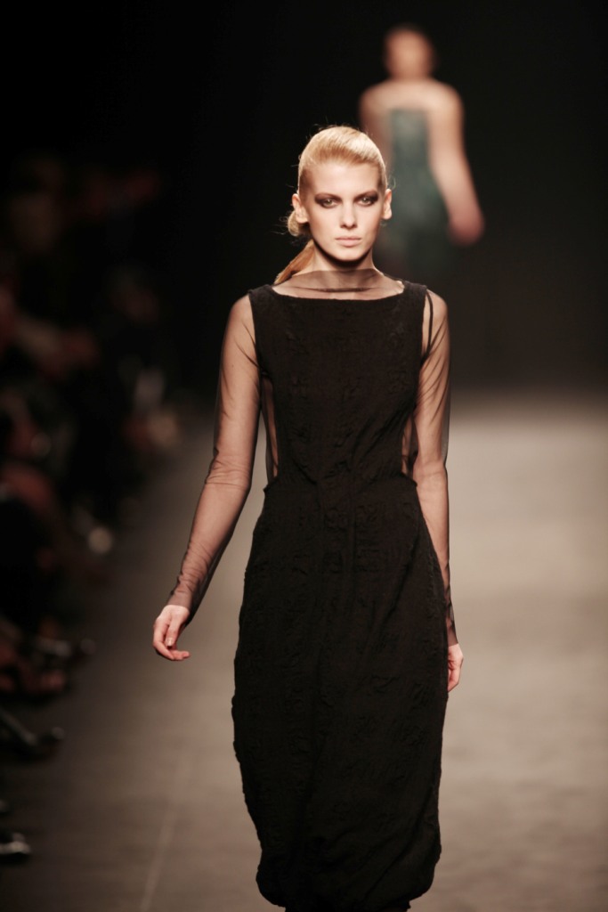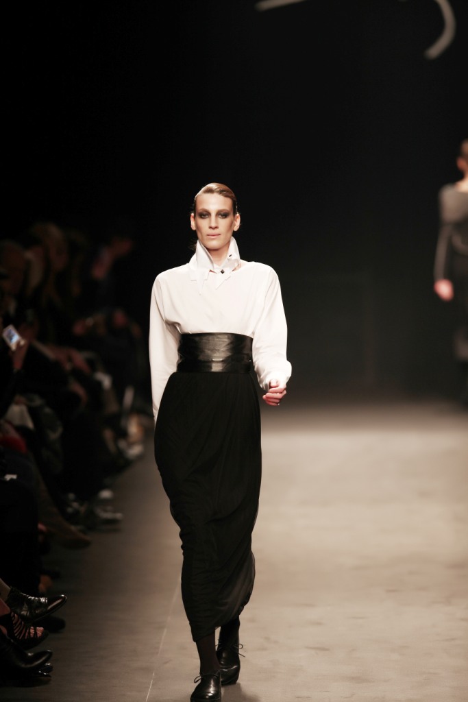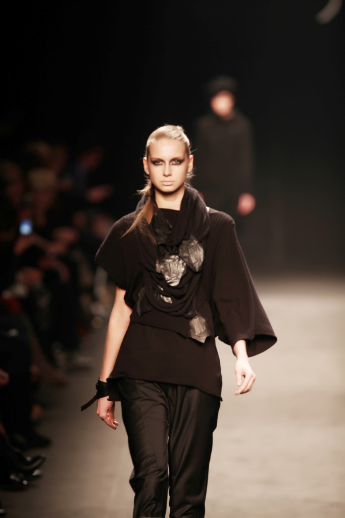 Con i pugni che coprono il viso e un’andatura a ritmo di musica, si fa avanti, tra le due ali di pubblico, una donna interamente vestita di nero che si muove in una sorta di danza. Questi passi che incantano gli spettatori le permettono di mostrare tutti i modi con cui il particolare maglione di lana che porta su di sè può essere indossato. Fin dai primi istanti del défilé, è, quindi, chiaro che i capi classici che caratterizzano l’armadio di ogni donna sono stati rivisitati nei loro tagli e nella forma dalla stilista turca Nilgün Gülen. La designer ha scelto Milano come luogo di presentazione del suo brand all’Europa, per inaugurare un simbolico ponte di scambio tra la sua Turchia e il vecchio continente.