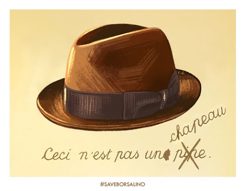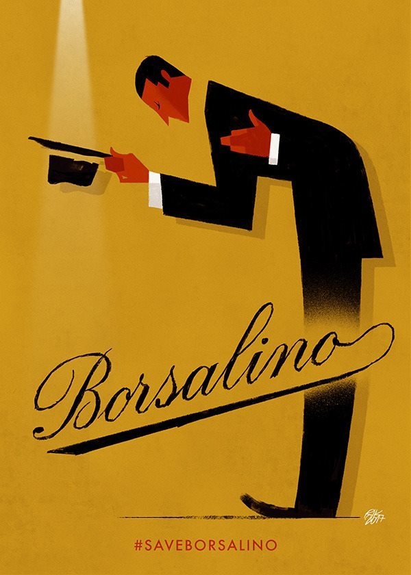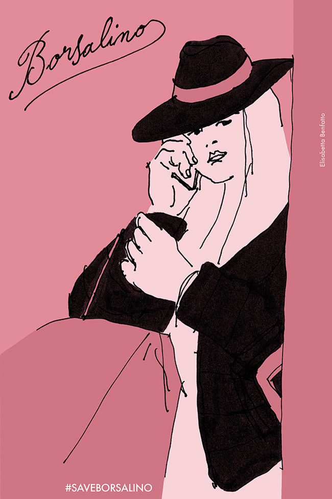 Tutto è nato dall’intraprendenza del succitato Riccardo Guasco, disegnatore alessandrino noto in tutto il mondo, che ha fondato e organizza, insieme ad amici artisti, il festival per illustratori “Inchiostro” ed ora si è impegnato strenuamente nel progetto #saveBorsalino, per il quale ha realizzato un’opera con la dedica “Su il cappello”, invitando i colleghi a fare altrettanto. La risposta è stata un’onda di creatività e di solidarietà, con lo sbocciare di disegni vari a matita, inchiostro o mouse del pc, utilizzando colori (in alcuni casi, il Tricolore), sfumature di nero, macchie di giallo, tracce di bianco. Una galleria di emozioni sulla carta, perché con le emozioni sono state concepite trepidando per quello che è un autentico marchio italiano a rischio di essere perduto per sempre.