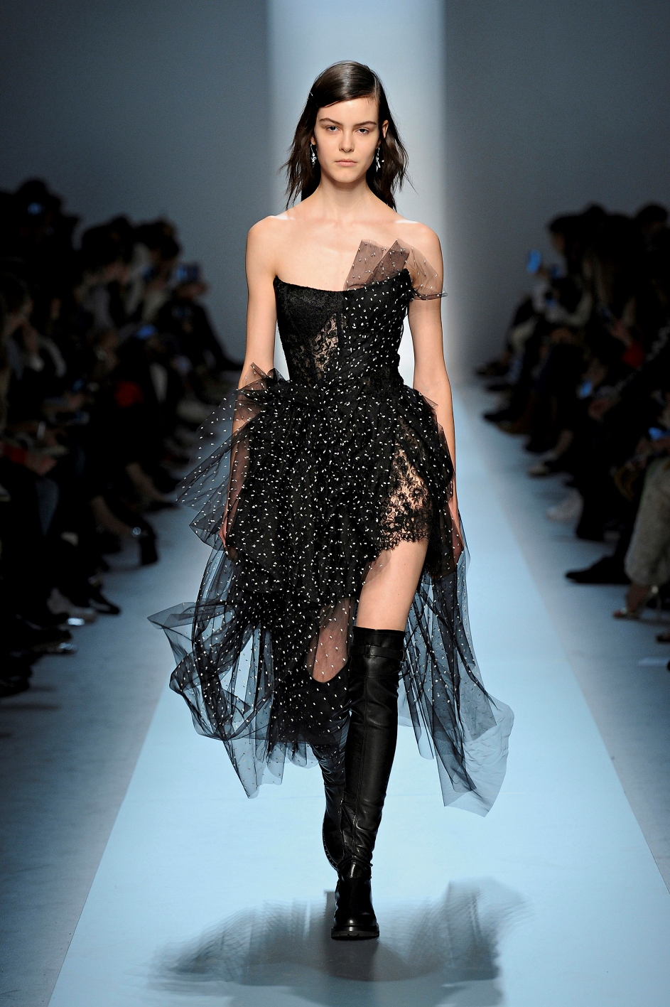 Cosa ci era sembrato stonato a febbraio? Innanzitutto la considerazione che sono poche le indossatrici che sanno “interpretare” un abito, e metterne quindi in evidenza tutto il fascino; poi ci è sembrato fortemente dissonante lo stivale alto con suola pesante che toglieva incanto, glamour e quel pizzico di sensualità che rendono un abito desiderabile.
