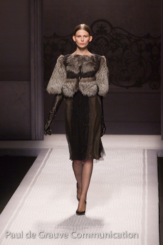 Le pellicce giocano un ruolo importante. Sono cappotti di visone dai colori forti; gilet, cappe e giacche di volpe argentata assecondano il gioco dei contrasti con il loro volume opposto alla leggerezza delle gonne.