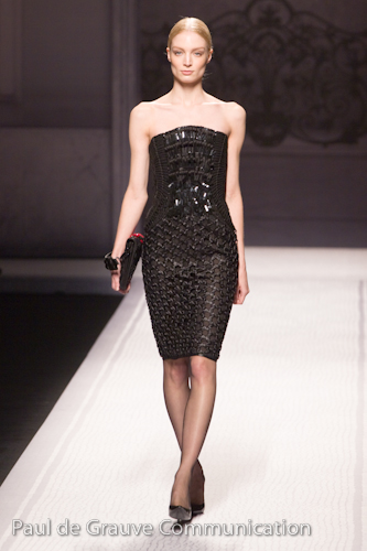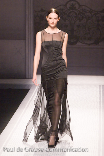 La sintesi operata da Alberta Ferretti per esprimere una femminilità più determinata si rivela negli abiti e nelle gonne di pelle con inserti di voile dove le geometrie che ne risultano regalano al corpo femminile allo stesso tempo sensualità e severità. La stilista raggiunge lo stesso effetto anche negli abiti da sera lunghi femminili e sensuali: cuciture, tagli e intrecci scolpiscono e rivelano la morbida sinuosità del corpo femminile, ma nello stesso tempo lo irrigidiscono dandogli rigore.