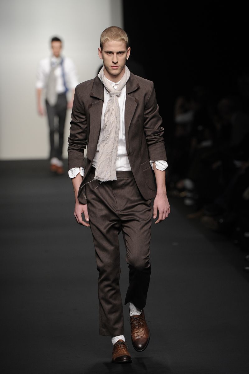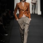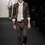Riflettori puntati, quindi, sull’uomo un po’ Dandy di Alessia De Pasquale, che ha voluto creare un’immagine di giovane bohemien, cui piace abbinare gilet dal gusto retrò con giacche destrutturate e pantaloni ampi e dal cavallo basso. Nella sua collezione predominano i blue e i grigi, su morbidi tessuti in lana e cachemire: sembra quasi che questi abiti siano usciti da vecchi bauli da viaggio.