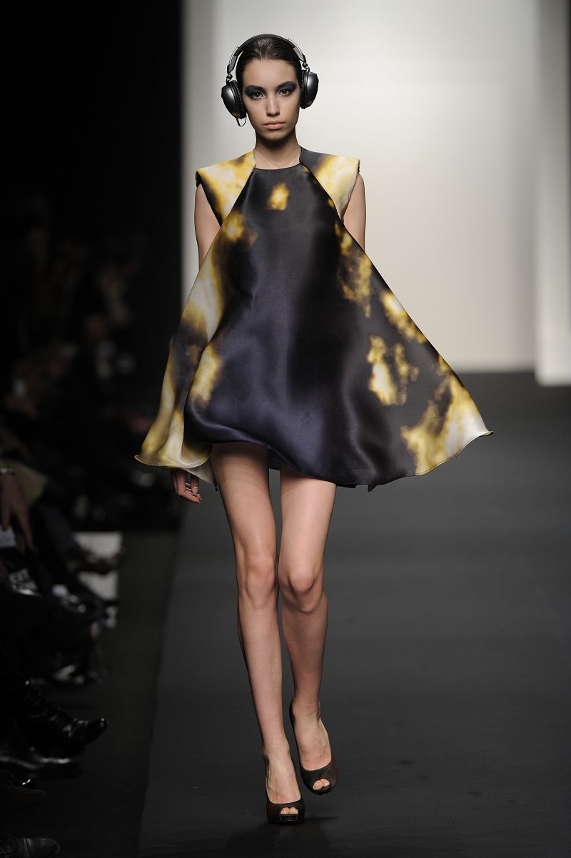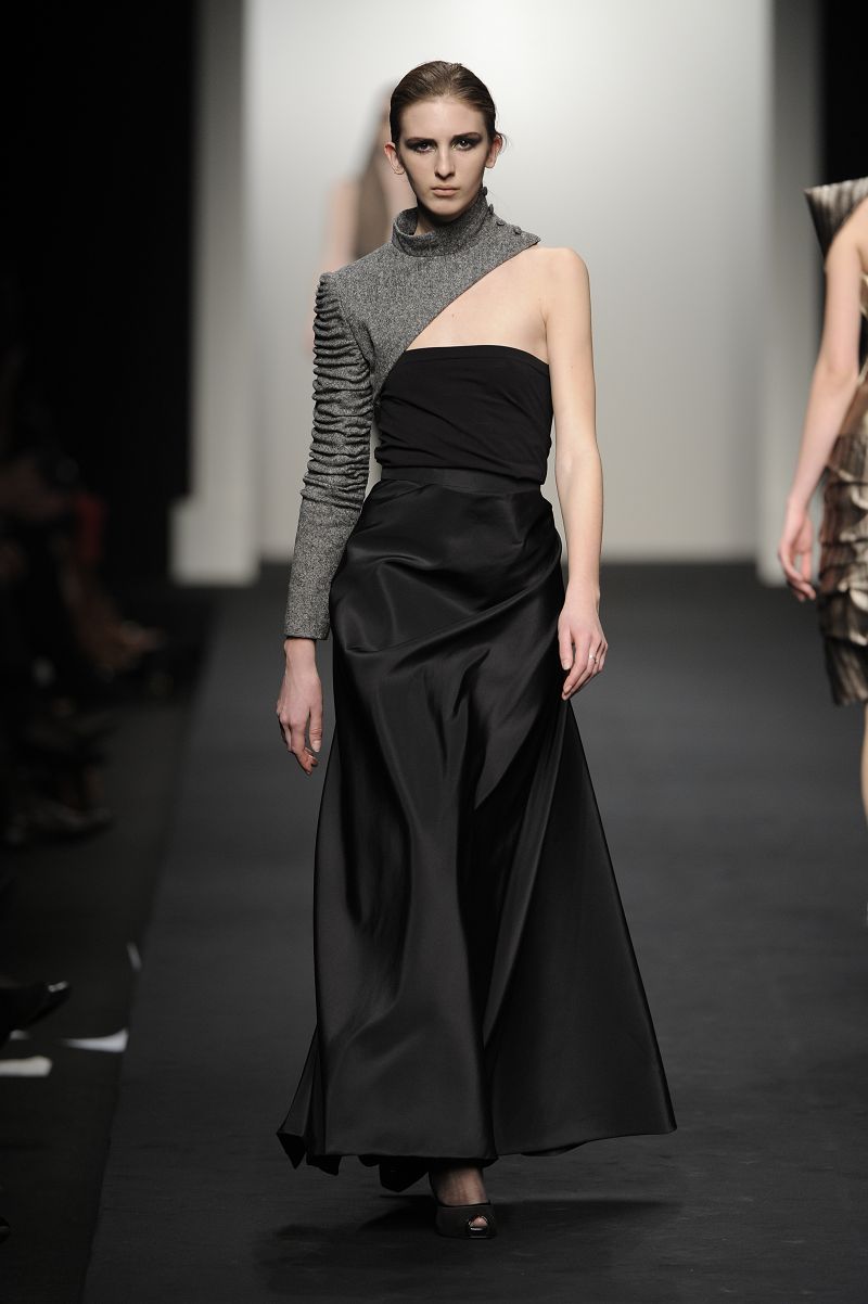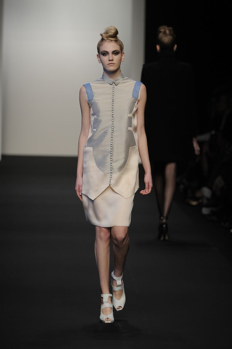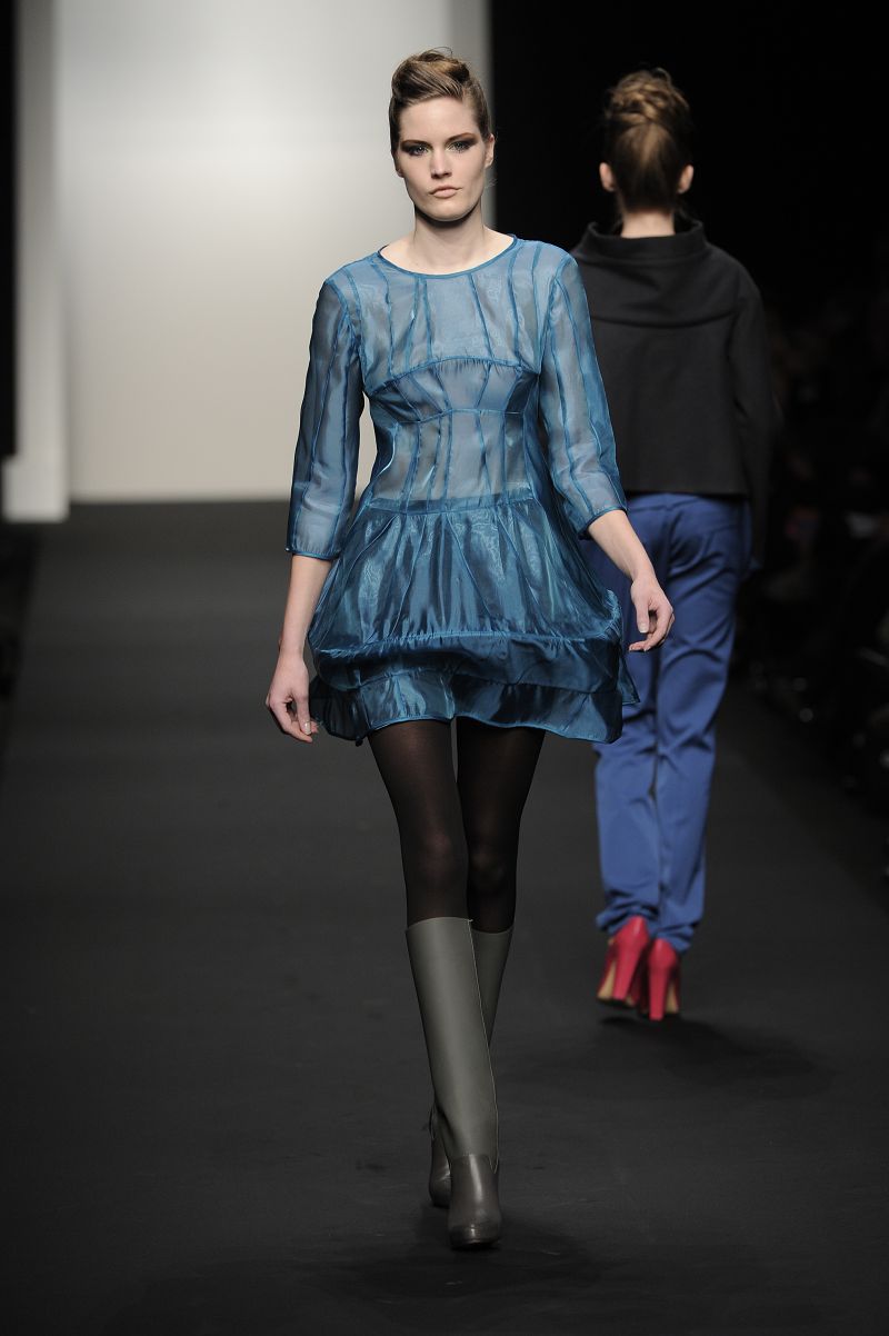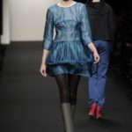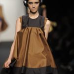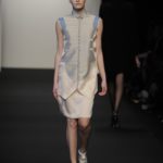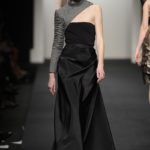 Chiude la prima sfilata Alessia Xoccato, che si diverte a scomporre le strutture, deviare e discostare i volumi, unire materiali che mettono in forte contrasto i pesi, provocando disequilibri apparenti. La sua collezione si ispira al vento.