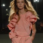 La musica tuona e lo show ha inizio. Navarra è uno che ama stupire con uno stile sempre eccentrico, complesso. Come quello presentato nella terza giornata della fashion week milanese: una contaminazione di ispirazioni che provengono dagli anni ’60 ai 90. Sfilano capi in cui le spalle, anche quelle delle giacche di ispirazione militare, sono al centro dell’attenzione, sottolineate da rouches voluminose. La maglia è in primo piano.