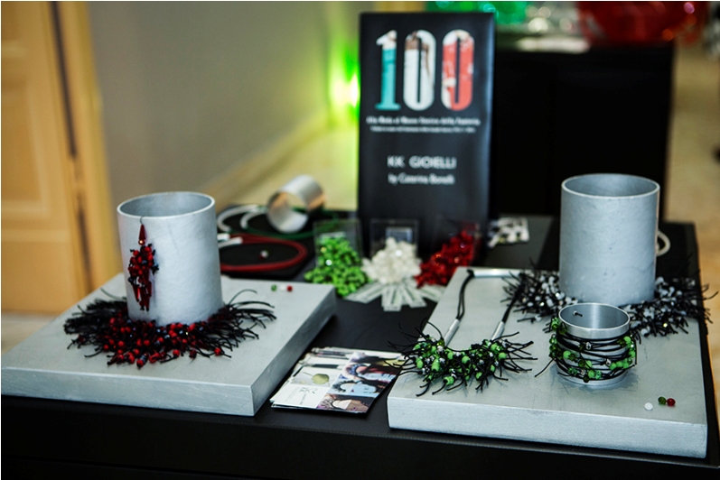 Nella sezione dedicata ai “Preziosi” Patrizia Corvaglia Gioielli, per il Progetto “100” si è ispirata alla poesia “I Soldati” di G. Ungaretti realizzando una vera scultura, un albero gioiello in bronzo con foglie cadenti; Caterina Bonelli con il suo brand KK gioielli pone l’attenzione alla ricerca di materiali tra i più diversi: metalli, carta, materie plastiche e legno.