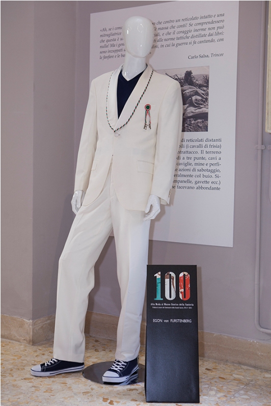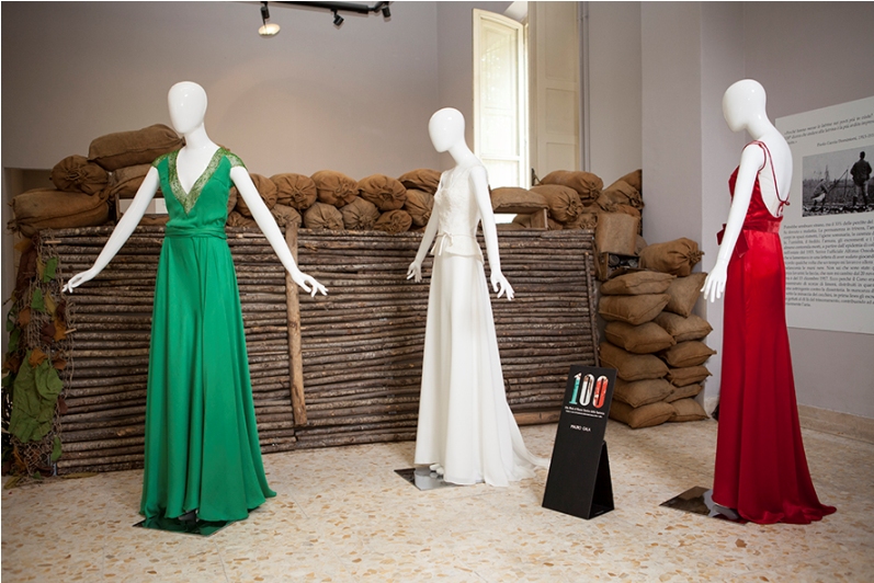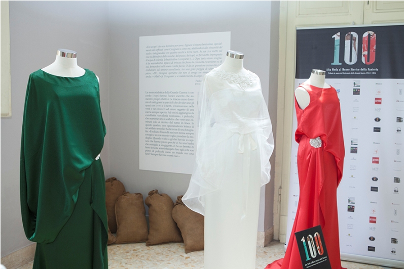 Un modo leggiadro di ricordare un evento tragico, la grande Guerra del 1914. Un modo piacevole per mettere in mostra il Tricolore. Un modo garbato per rompere l’impatto doloroso delle macchine da guerra e per leggere con commozione i racconti drammatici dei soldati dalle trincee. Non è strano che un Museo Storico militare, quello della Fanteria, esponga il tricolore; è strano che lo faccia attraverso abiti di Alta Moda e accessori luxury. Ma tutto può succedere e risultare coinvolgente, commovente, piacevole: nell’ambito del calendario degli eventi di ALTAROMALTAMODA Luglio 2014, il fashion producer Antonio Falanga ha messo in scena una singolare commemorazione del Centenario della Guerra 1914-18, dal titolo: “100” Alta Moda al Museo Storico della Fanteria.