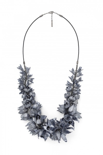 E poi fiori nelle spille, magari di metallo o di celluloide anni sessanta, nei grandi anelli da portare esclusivamente a mo’ di solitario, nei bracciali ad elastico con un fiore diverso su ogni elemento rotondeggiante, nei bottoni che “arredano” in modo un po’ frivolo una semplice camicia bianca così come un bouquet di mughetti messo a centrotavola arreda una candida tovaglia…..