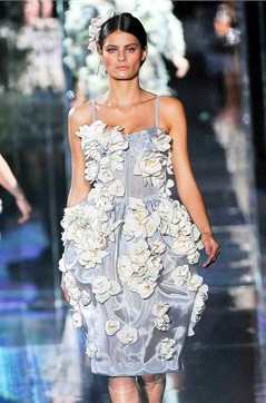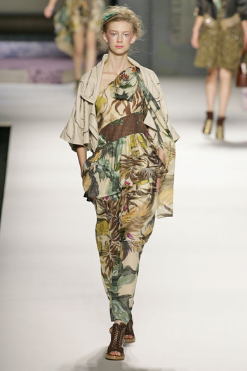 Alcuni allestimenti per le sfilate di ciò che vediamo ora nelle vetrine assomigliavano a dei giardini d’inverno un po’ retrò e dall’aria romantica dove le indossatrici, novelle figlie dei fiori, sfilavano con aria tra il neo-hippy e il bon chic.