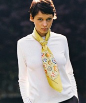 E allora, coraggio!! Cominciamo col tirar fuori dai cassetti qualche foulard – quest’anno il classico carrè farà la parte del leone – stampato floreale. Sicuramente svecchieremo in un attimo le nostre mises che odorano ancora d’inverno – ho visto ancora ieri delle pellicce in giro! -, semplicemente rinfrescandole con una nota nuova.