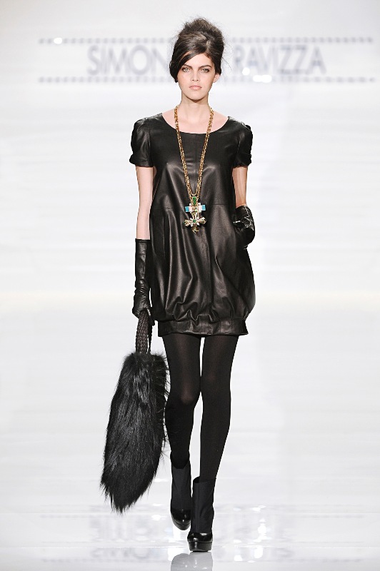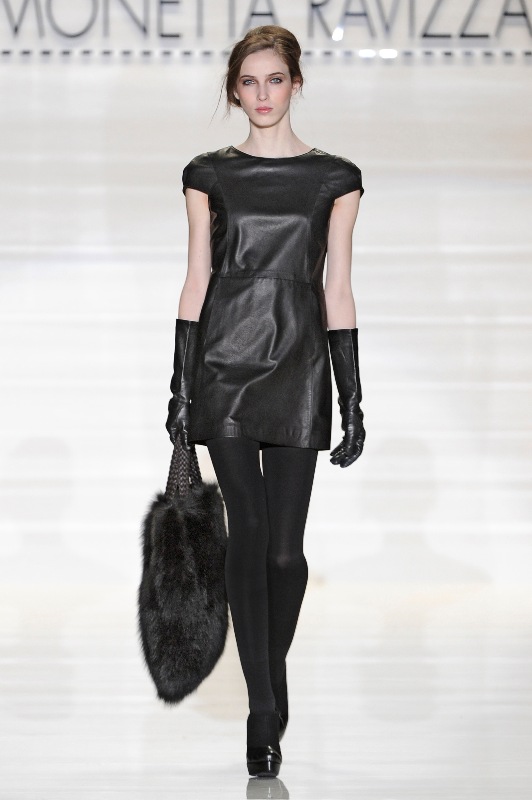 Per gli abiti Simonetta Ravizza sceglie ancora di giocare con il contrasto: i tagli sono perfetti per un cocktail party o per una cena en ville; i minidress in stile Sixties sono resi aggressivi dall’uso del neoprene, che sorprende, ma non disturba.